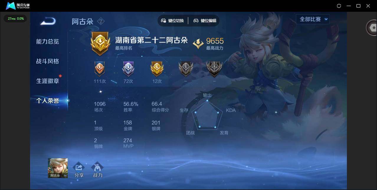 【王者荣耀连体和平精英】【金标阿古朵 金标明世隐】贵族等级: V8 英雄数: