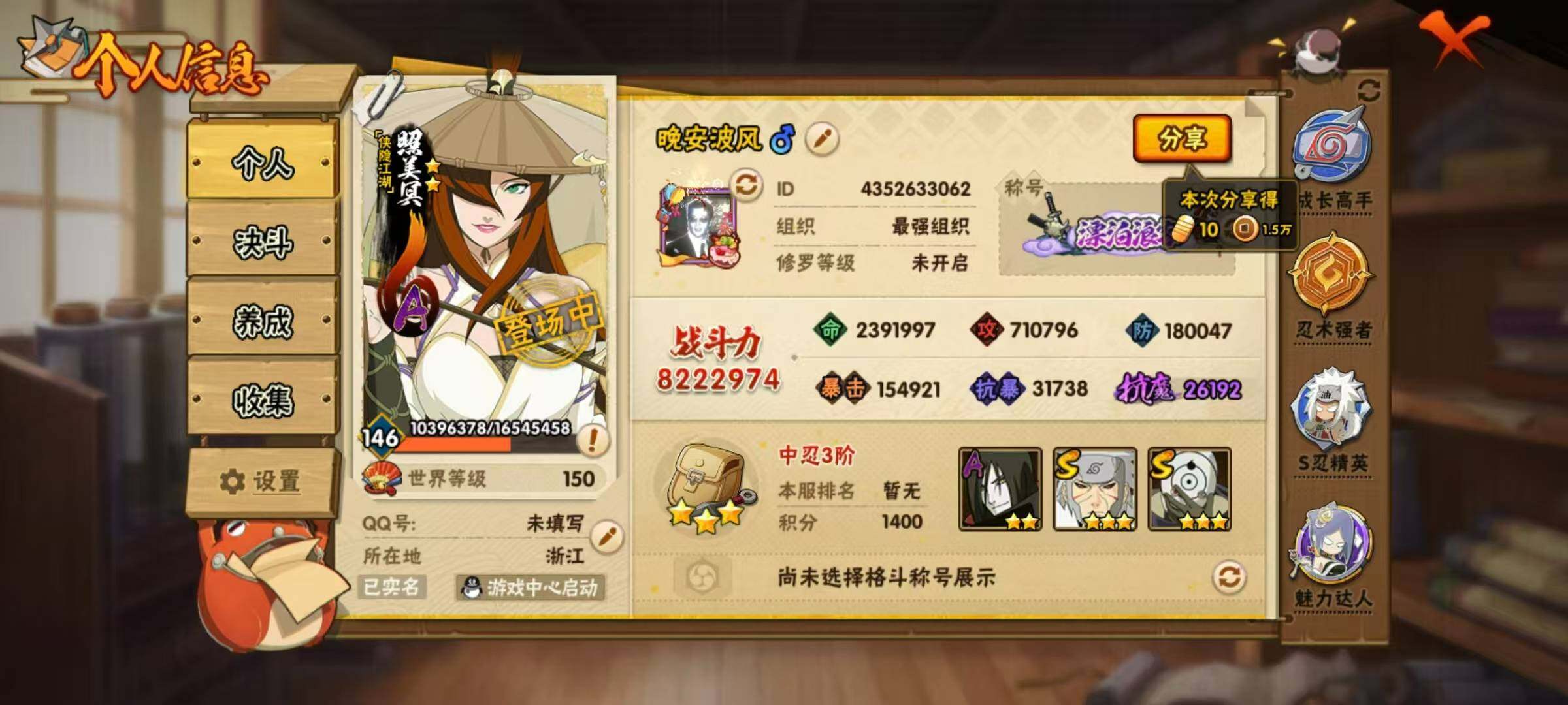 角色等级: