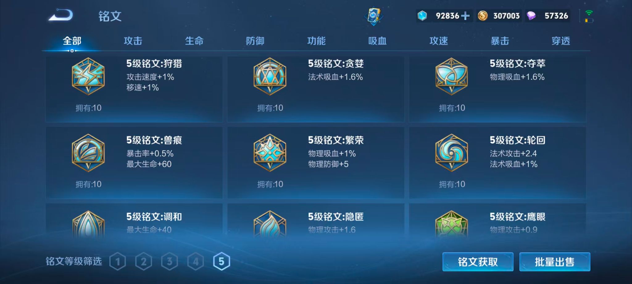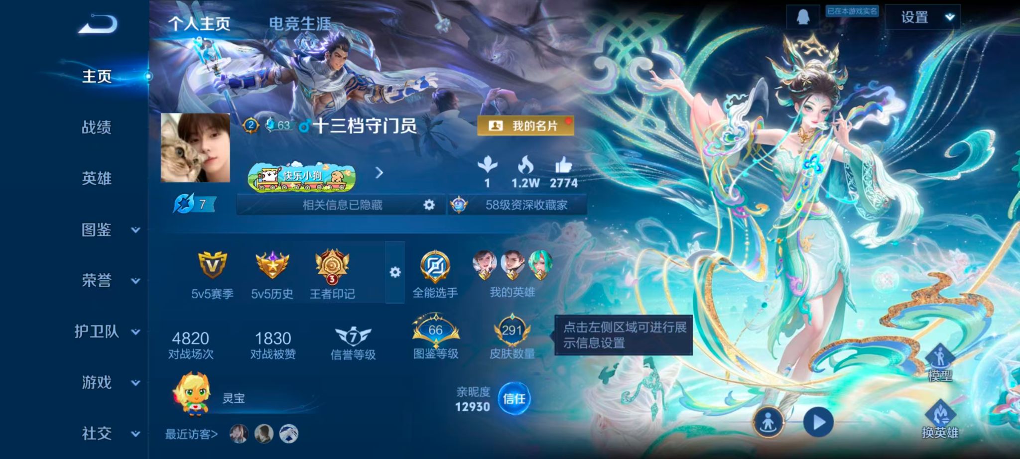 木兰典藏!白虎5年限!皮肤数量291印记总数3V8至尊星耀可