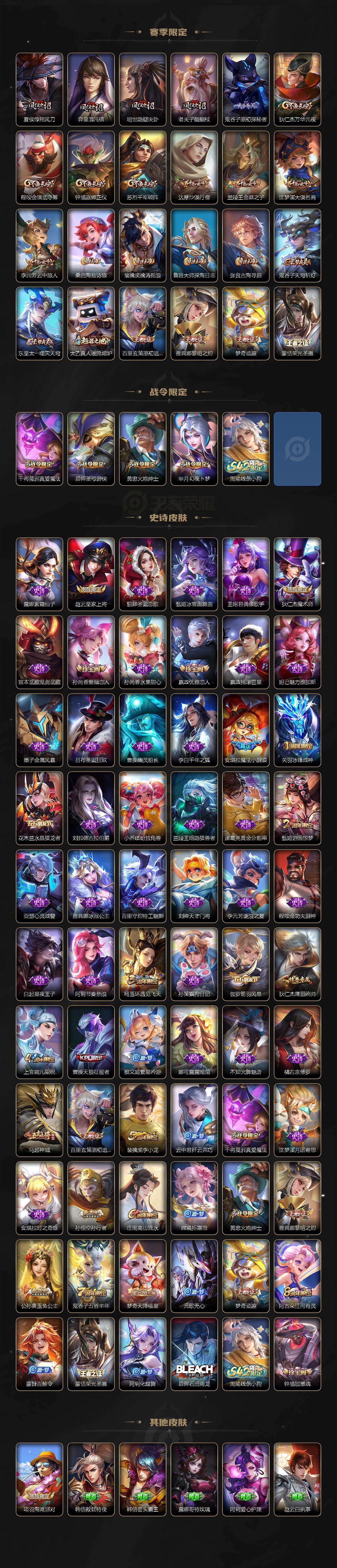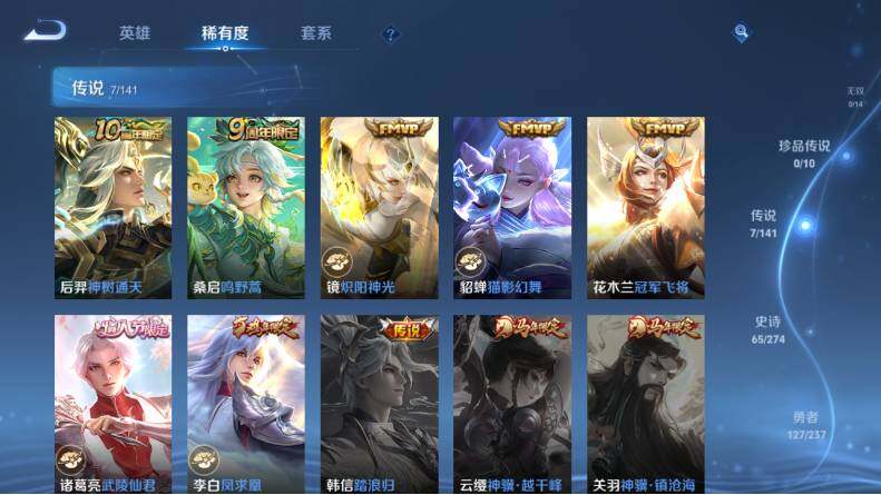 【传说皮肤】:后羿神树通天,桑启鸣野蒿,镜炽阳神光,貂蝉猫影幻舞,花木兰冠军飞将,诸葛
