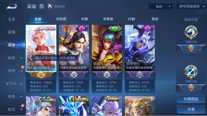 金标诸葛亮、9市标、打野37段、中路37段、对抗路33段