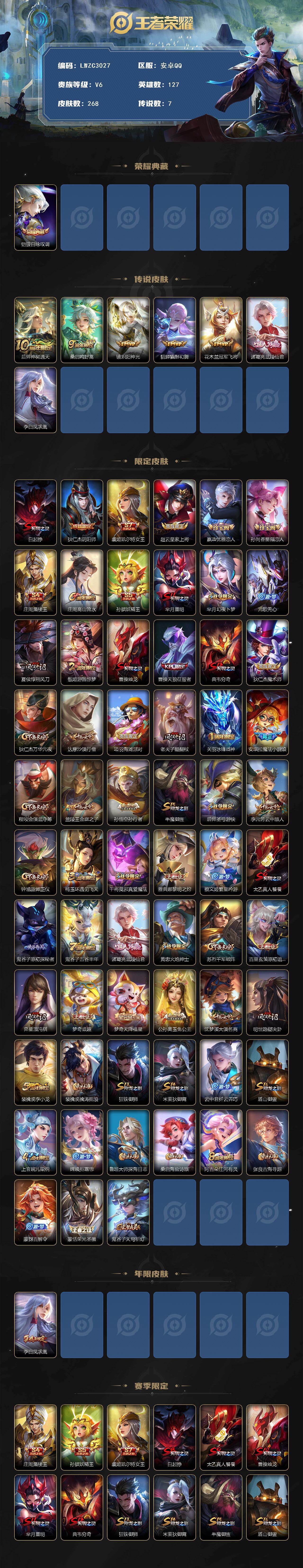 【特价出售/店主推荐】金标诸葛亮、9市标、打野37段、中路37段、对抗路33段 安卓Q-V6-荣耀黄金I段位-127英雄-268皮肤-1典藏皮肤-7传说-65史诗
