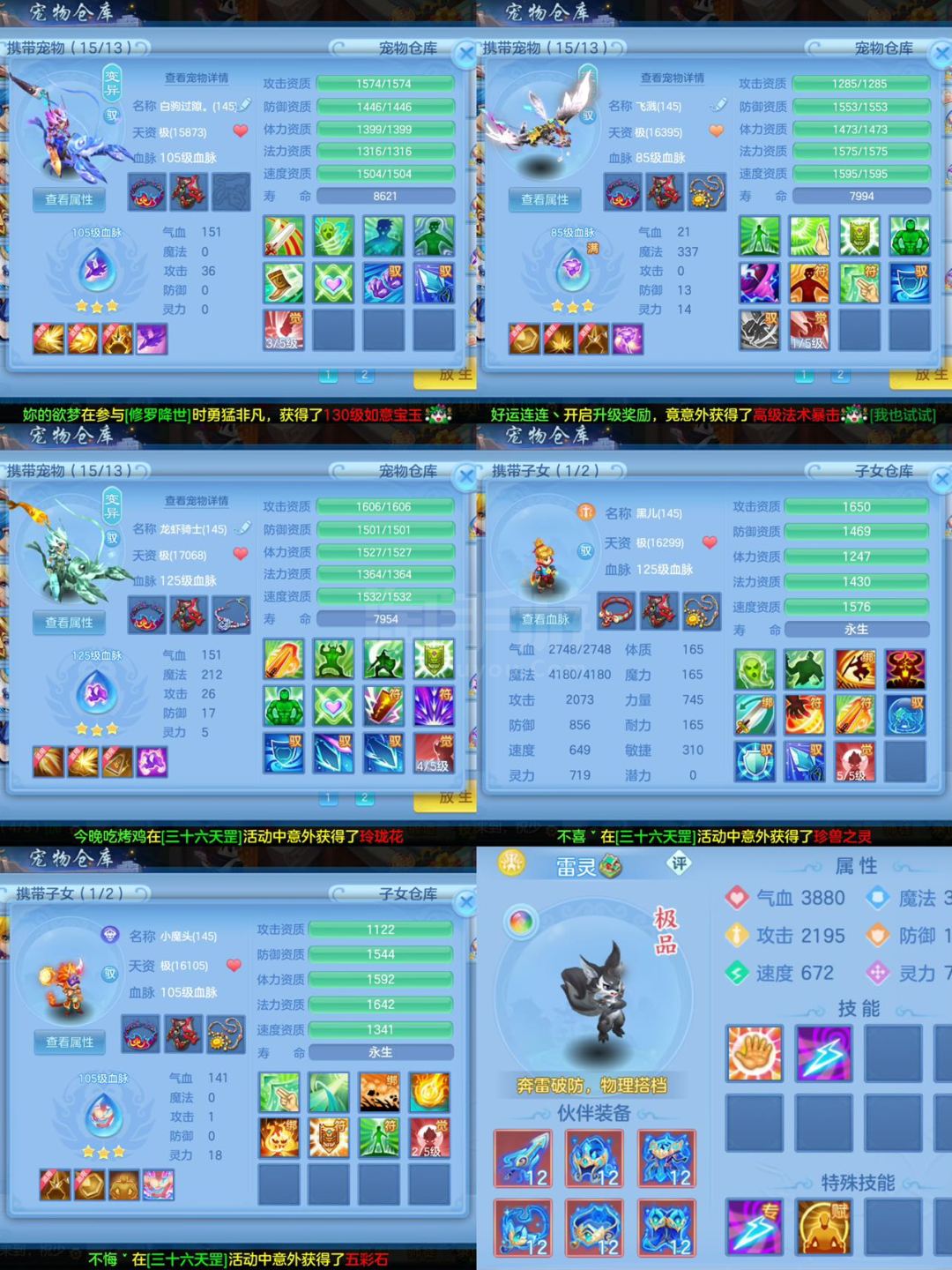 3件15段装备,不变卡2834攻,13个6技能宝宝,13多只满兽魂,神兽玉龙,海景房,12个红纹5专属血脉,3个坐骑,6只宠物皮肤,163邮箱无双重