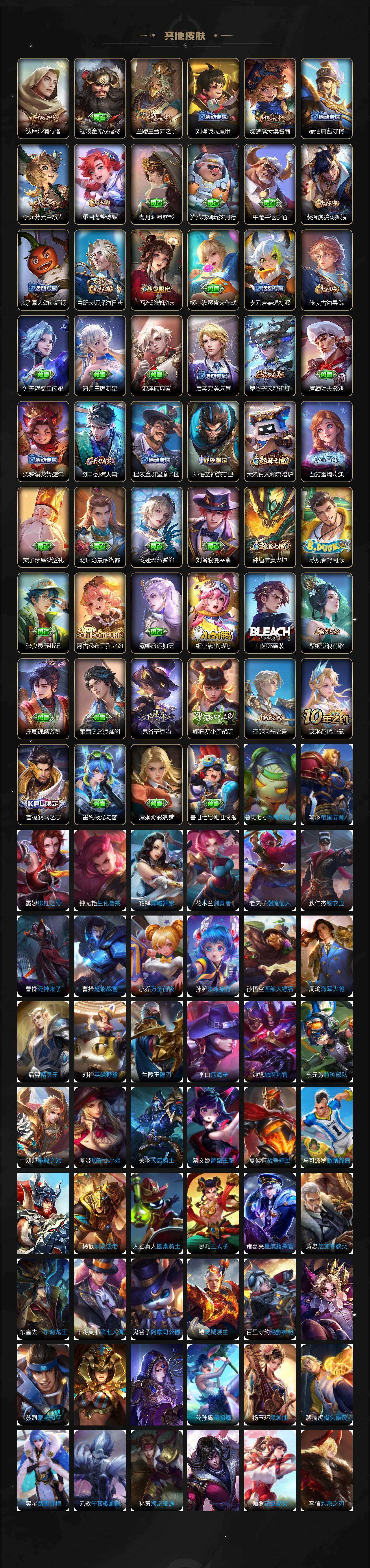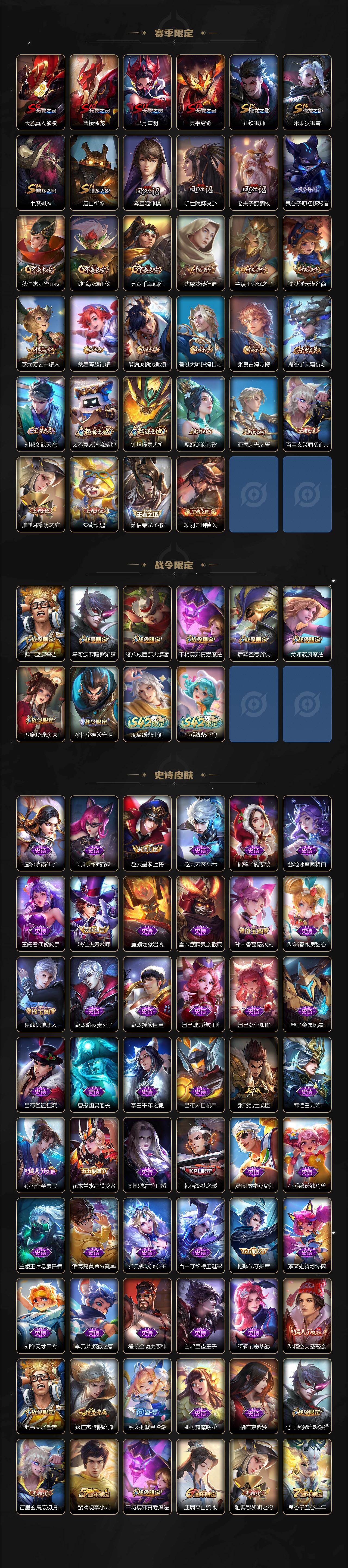 【传说皮肤】:后羿神树通天,妲己愿照众生和,虞姬愿照岁时盈,孙悟空零号赤焰,虞姬云霓雀翎,宫本武藏地狱之眼,孙悟空地狱火