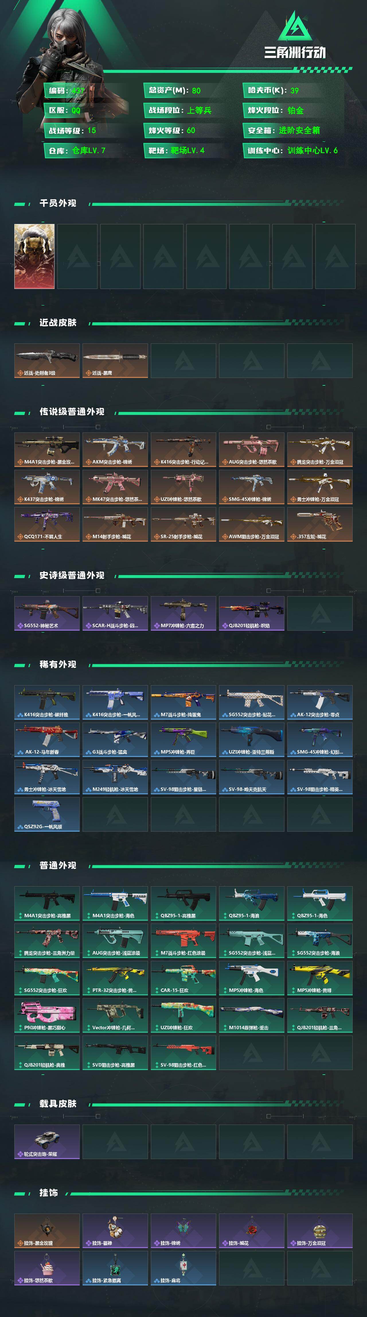 80m总资产-39k哈夫币-60烽火等级-铂金-15战场等级-上等兵ws015