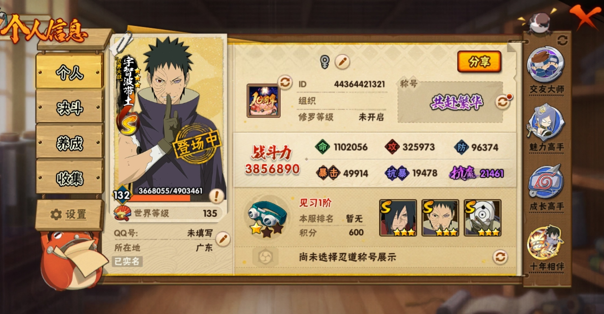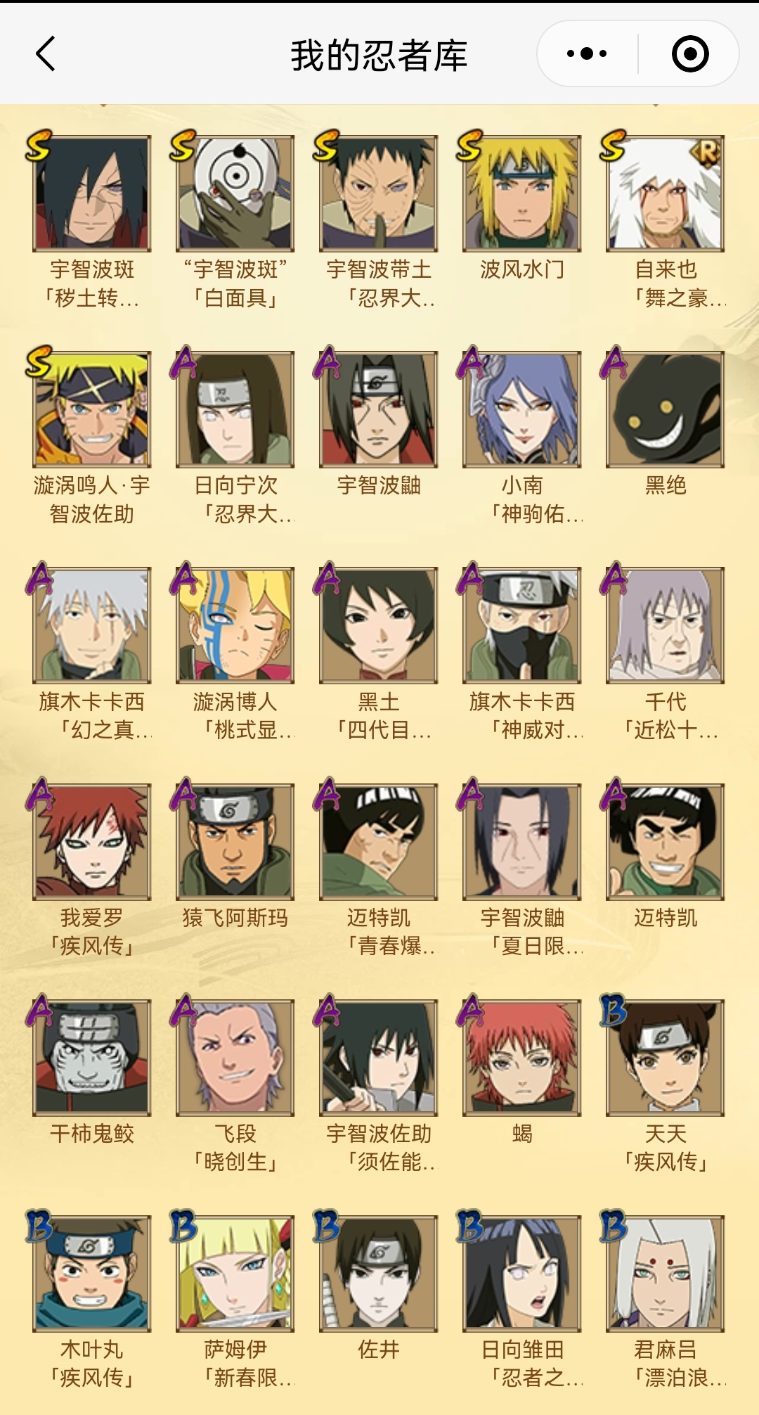 198忍法帖已买,神驹斑80碎片了,很快能出整卡,号里都是火影热门强势忍者,有忍战带土白面具解斑黑绝