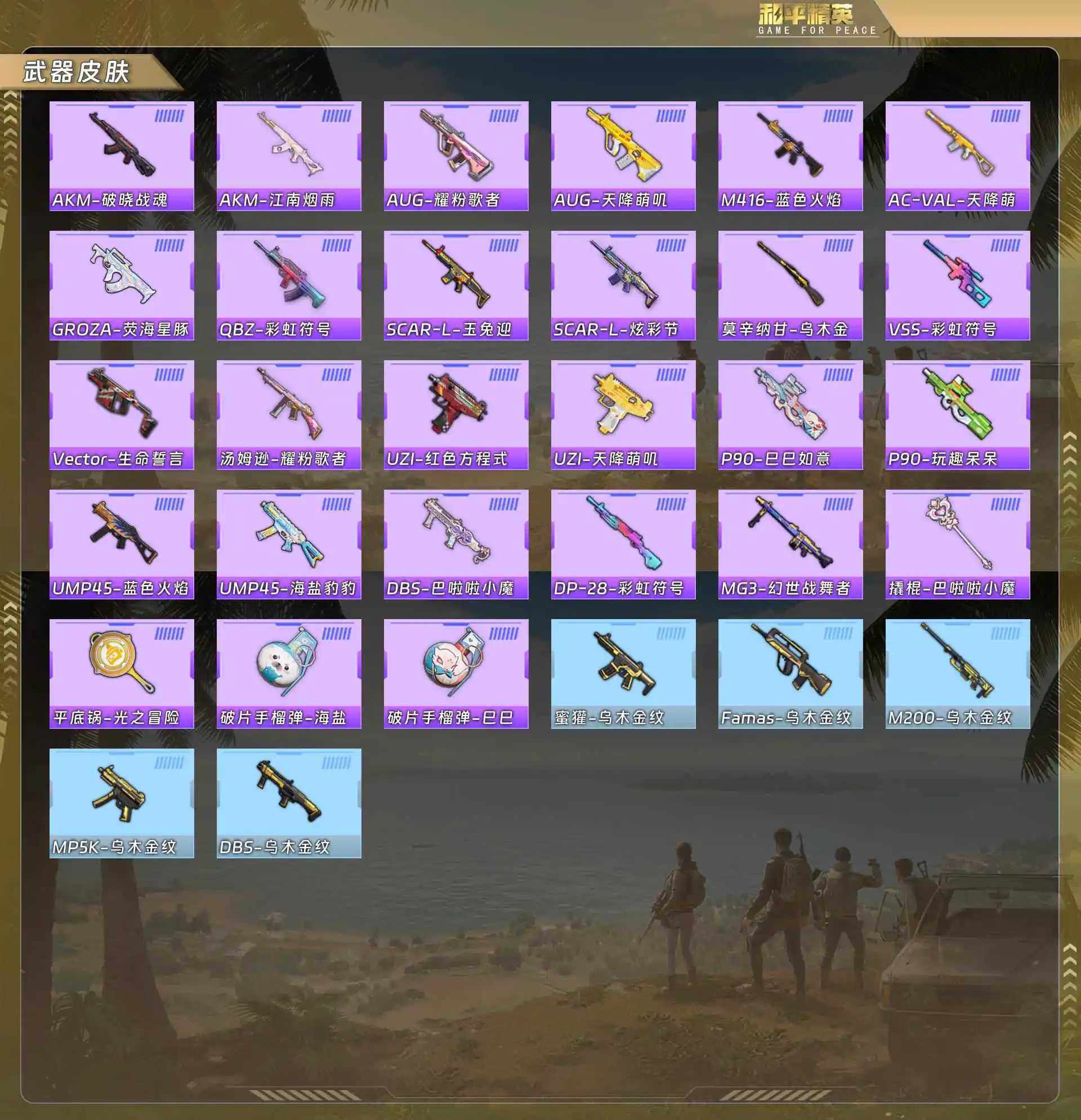 【粉色枪皮等级】:AKS-74U-星穹咏叹调(一级),Kar98K-巳巳如意(一级)