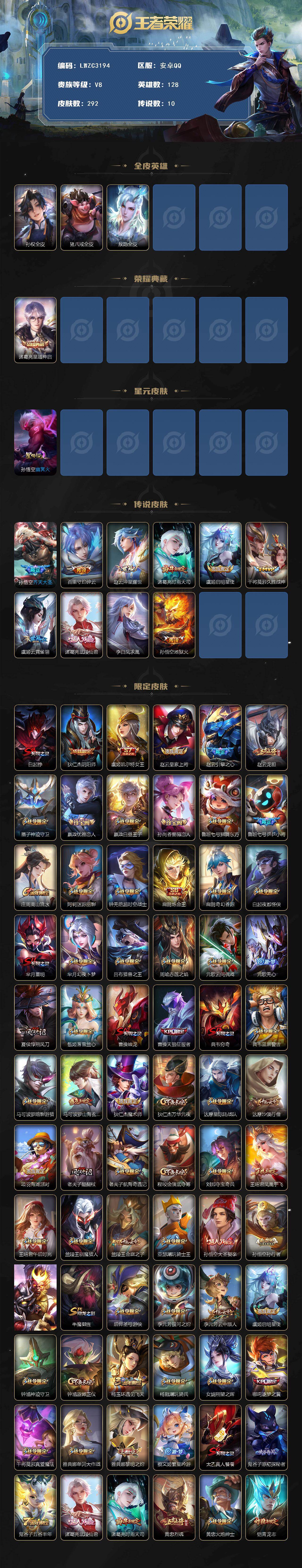 -V8-最强王者段位-128英雄-292皮肤-1典藏