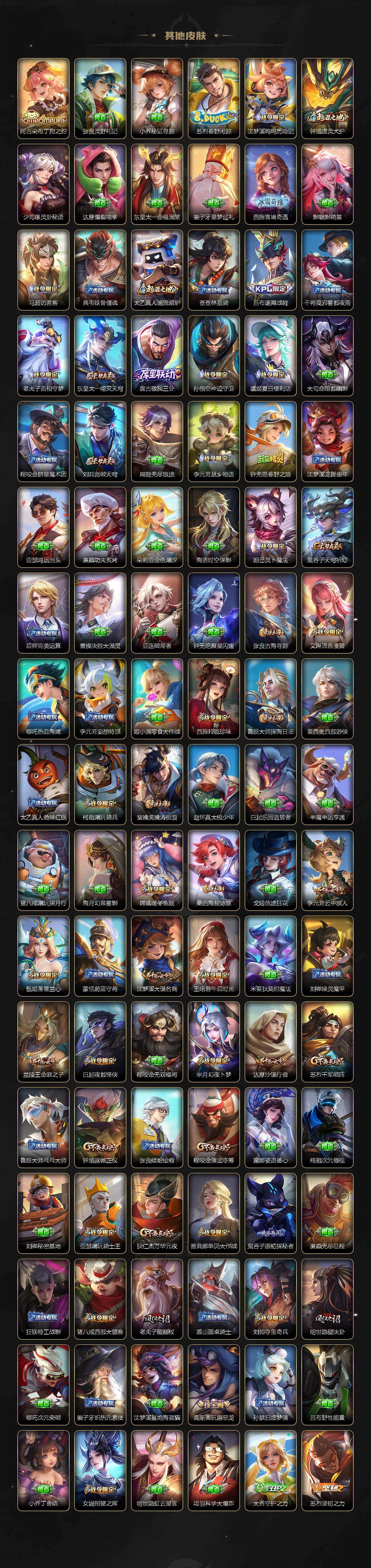【传说皮肤】:马超神骥逐星野,后羿神树通天,虞姬