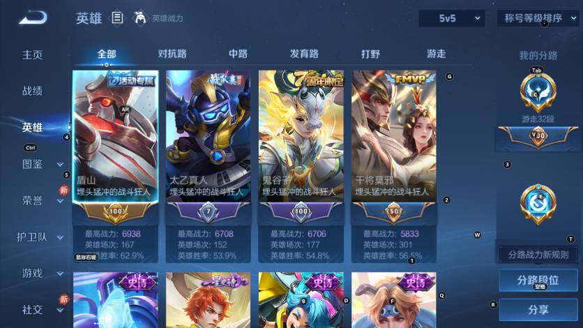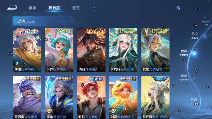 V7-最强王者段位-127英雄-342皮肤-2典藏皮肤-2星传说-8传说-98史诗