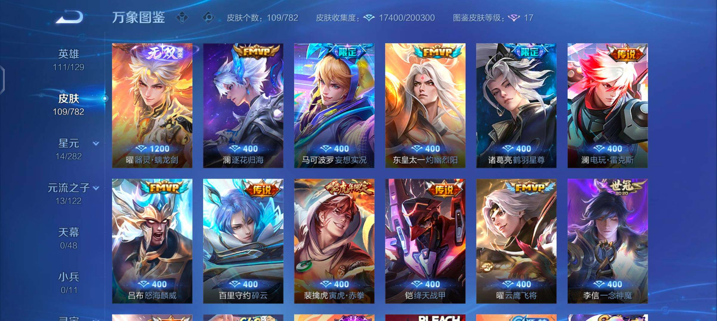 111英雄-109皮肤-6王者印记-120铭文-贵族积分3w