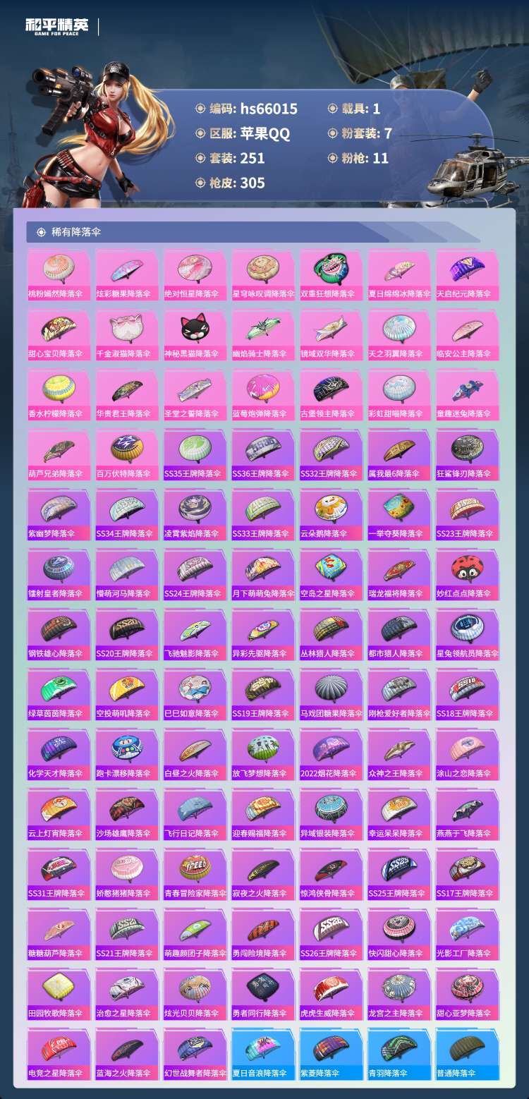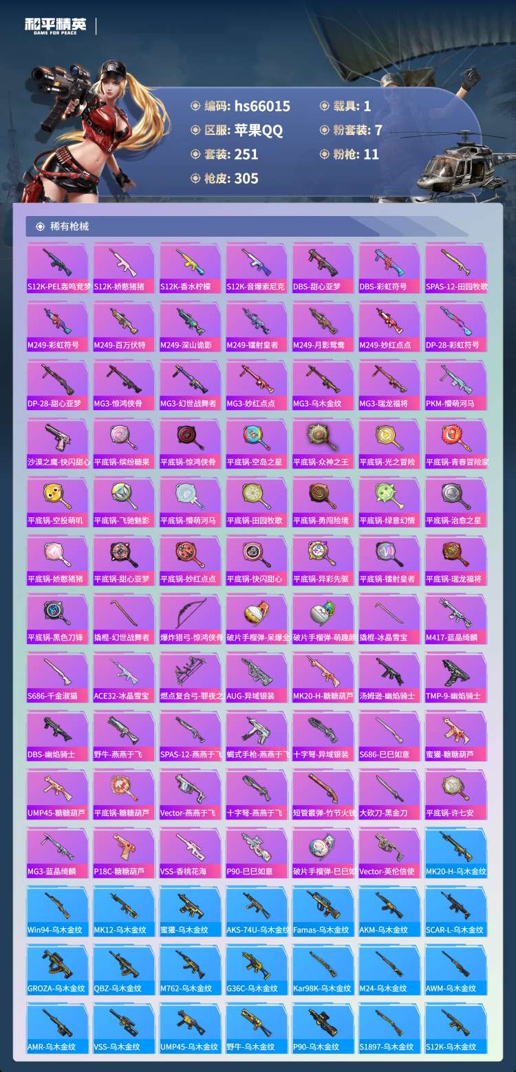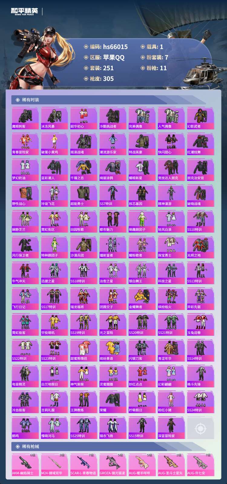 hs66015 苹果手Q-16王牌印记-有战神框-7粉装-11特效枪-1载具-111254热力值-2