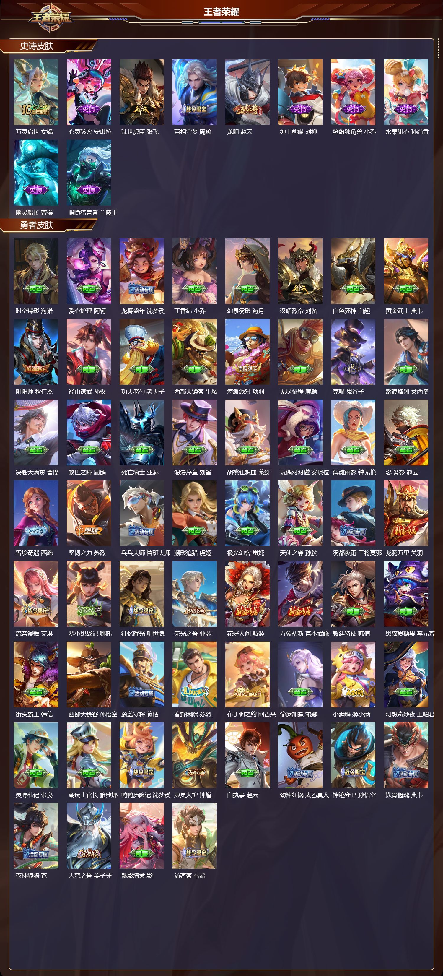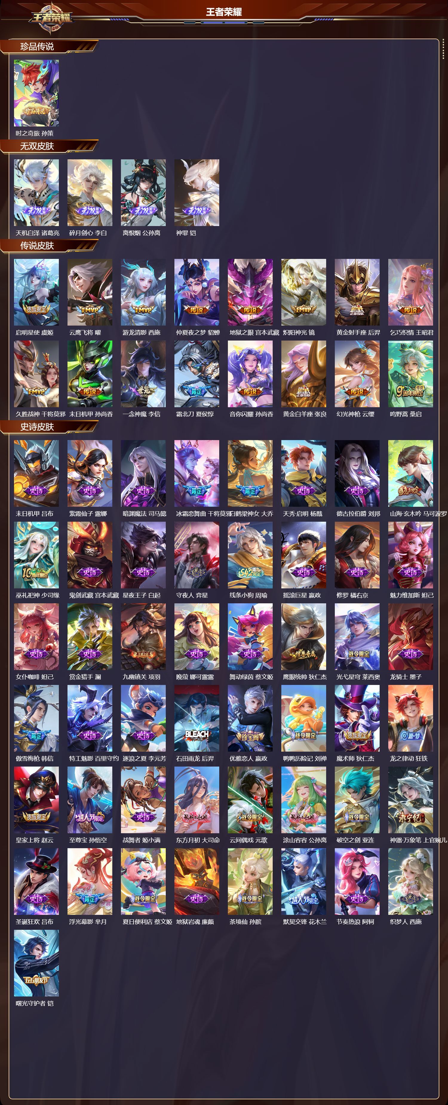 安卓QQ/荣耀王者/181皮肤/116英雄/0典藏/0珍品无双/4无双/1珍品传说/16传说/59史