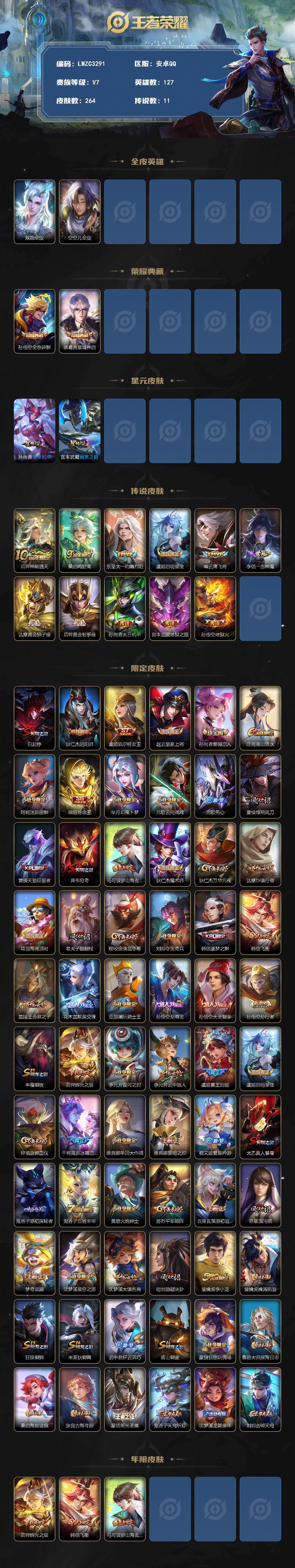 V7-永恒钻石V段位-127英雄-264皮肤-2典藏皮肤-2星传说-11传说-73史诗