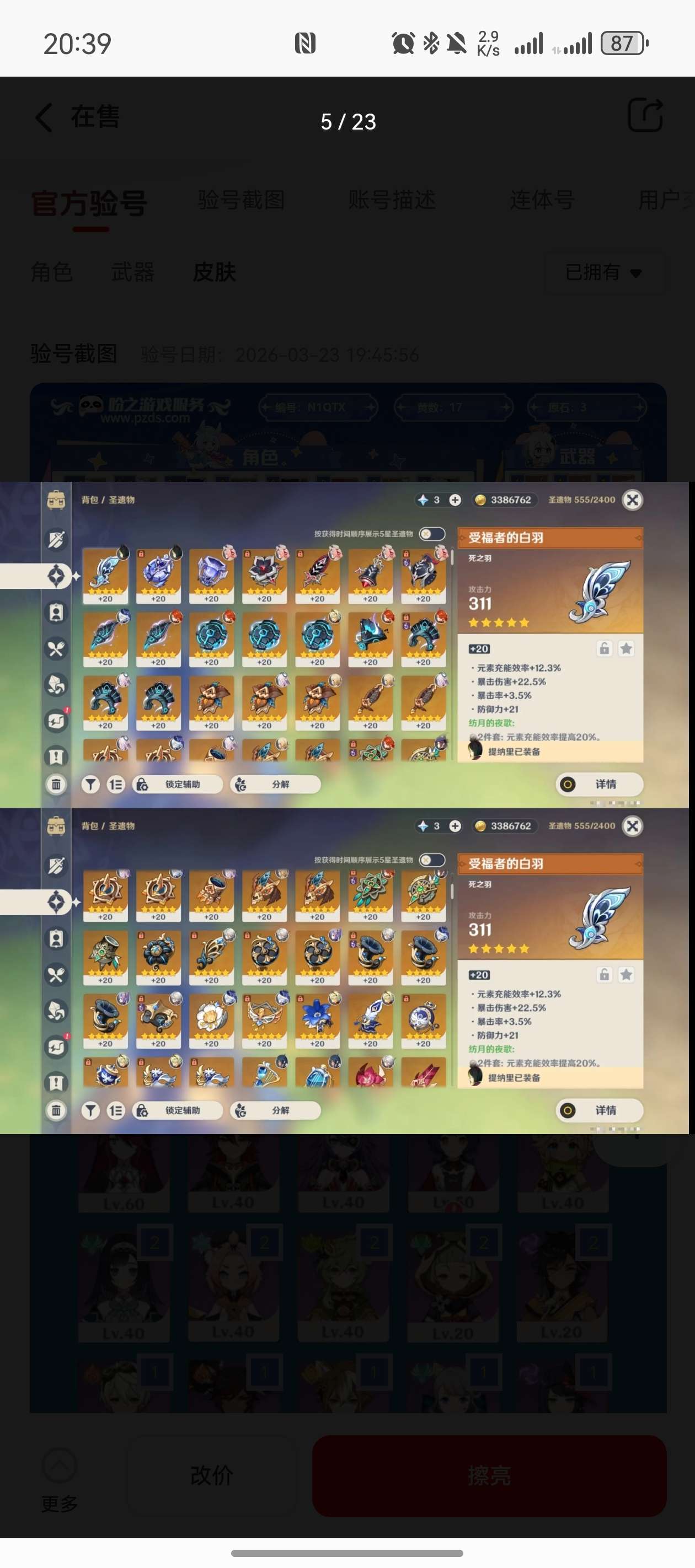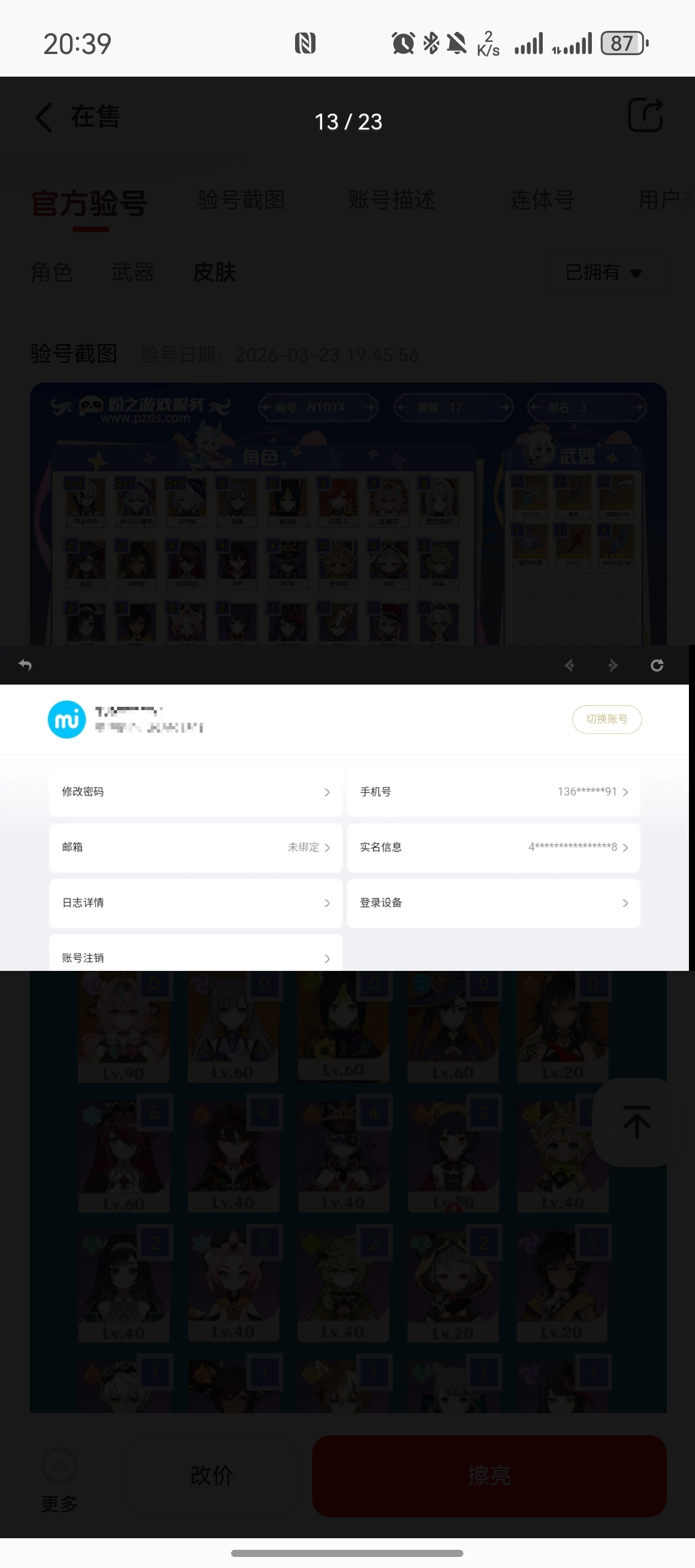 通过App,与卖家商议价格及保险,并向卖家索要账号最新截图,确认后下单购买。