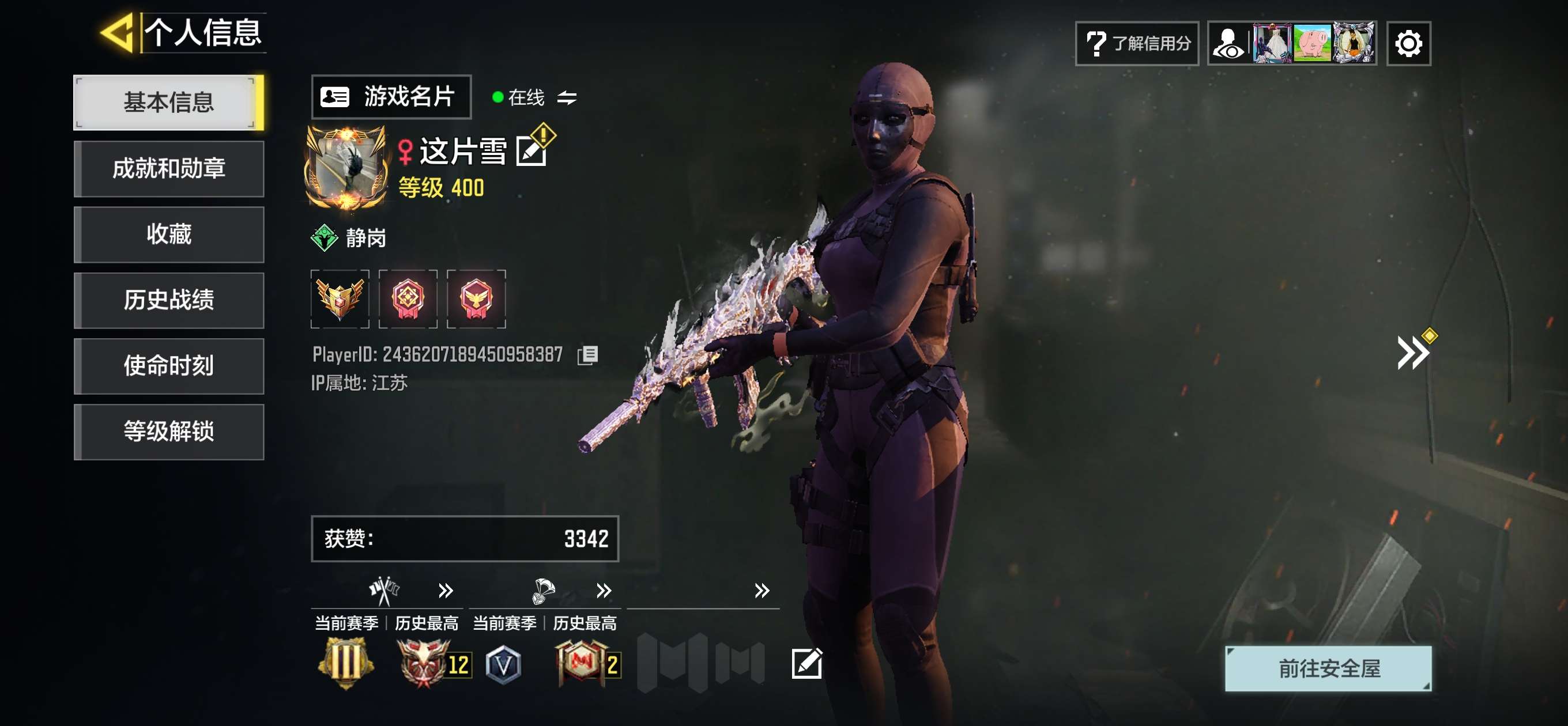 使命召唤个人满氪极品,前后充了5w左右,所有热门武器皮肤都有,墨龙冰龙卢卡斯狼狙,所有传说刀皮都有