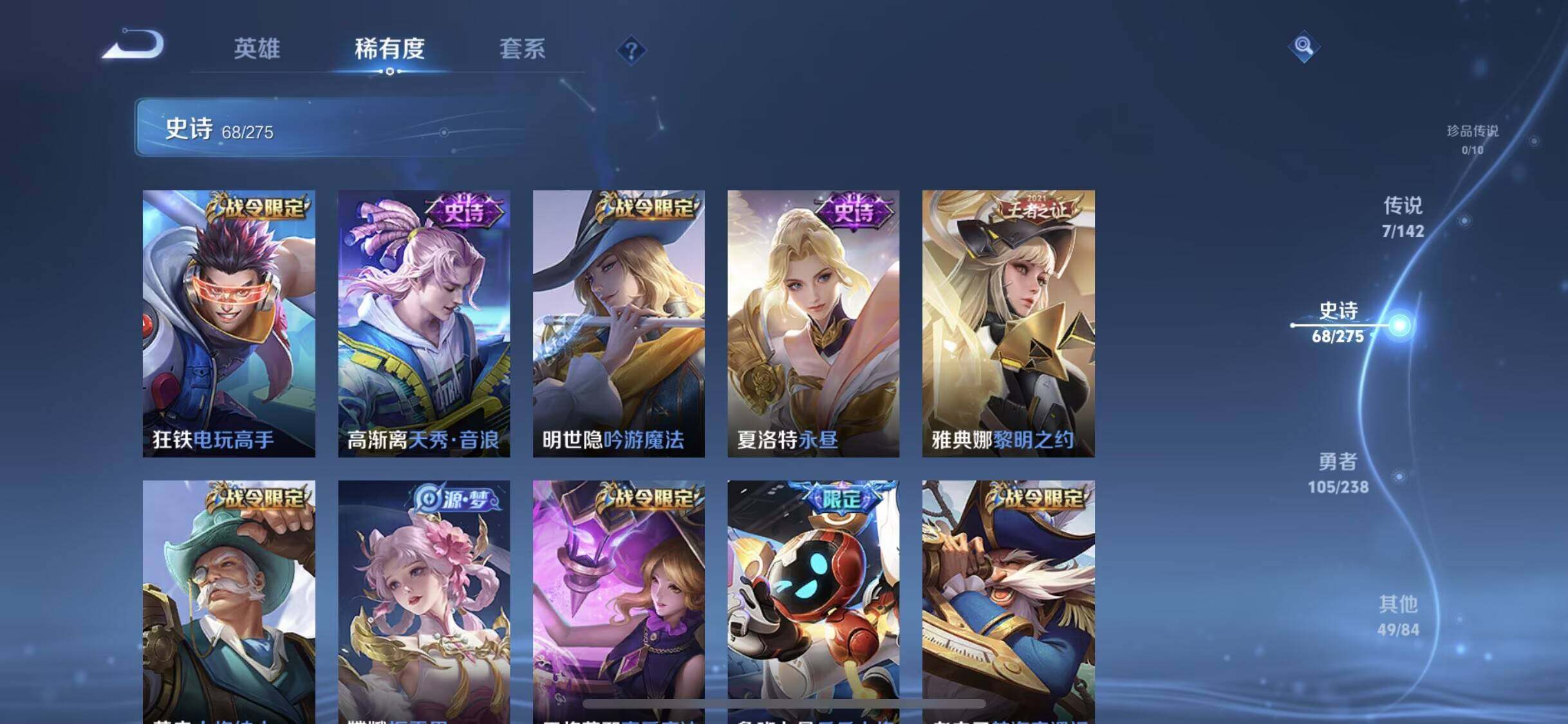 【限定皮肤】:白起狰,姜子牙天穹之誓,狄仁杰阴阳师,虞姬凯尔特女王,赵云皇家上将,墨子神迹守卫,妲己时之彼端,嬴政白昼王子,