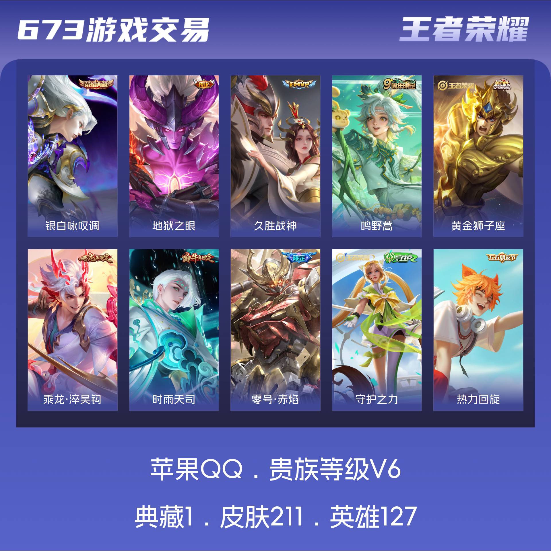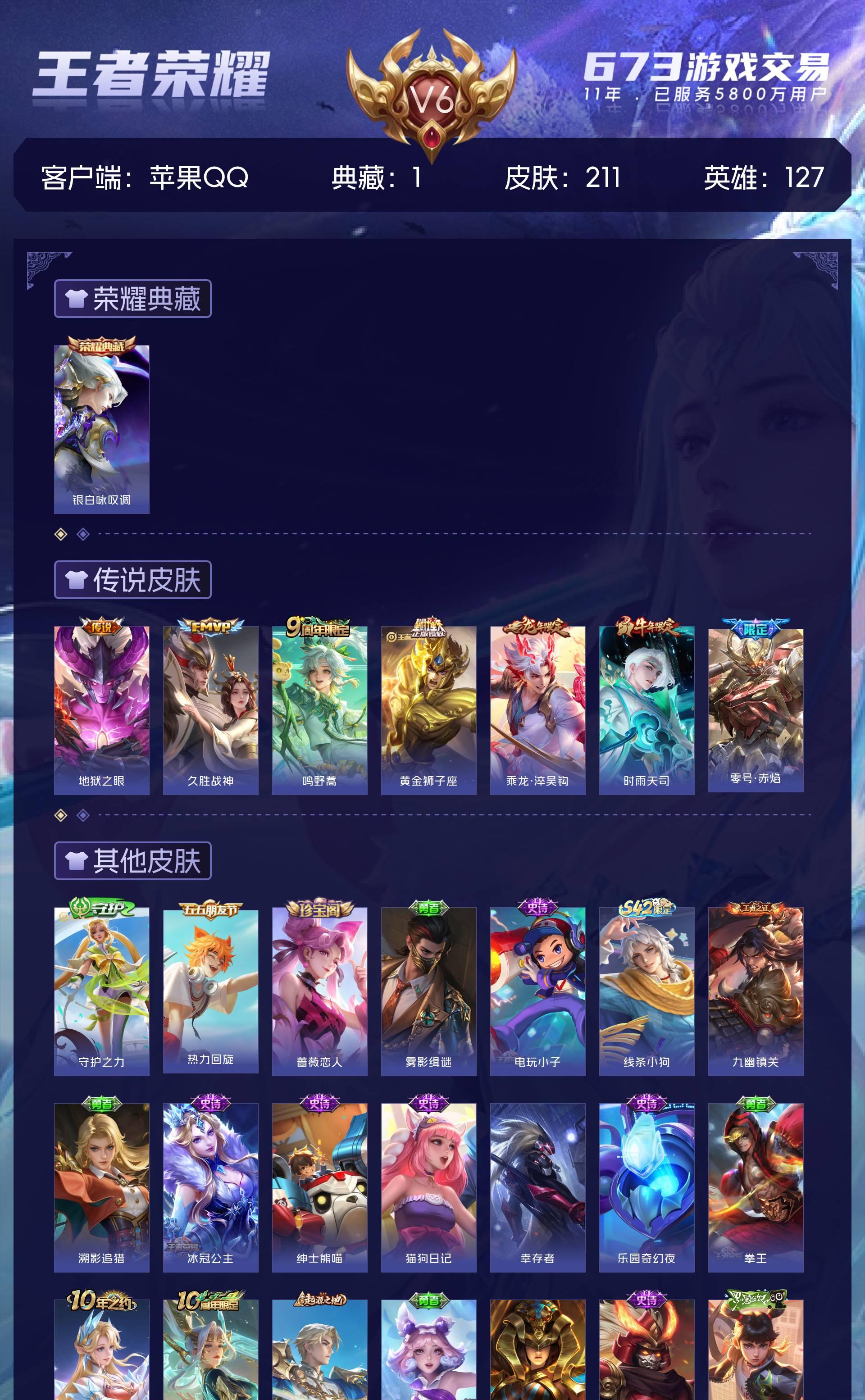 V6 皮肤211 英雄127 最强王者 荣耀典藏1 传说7