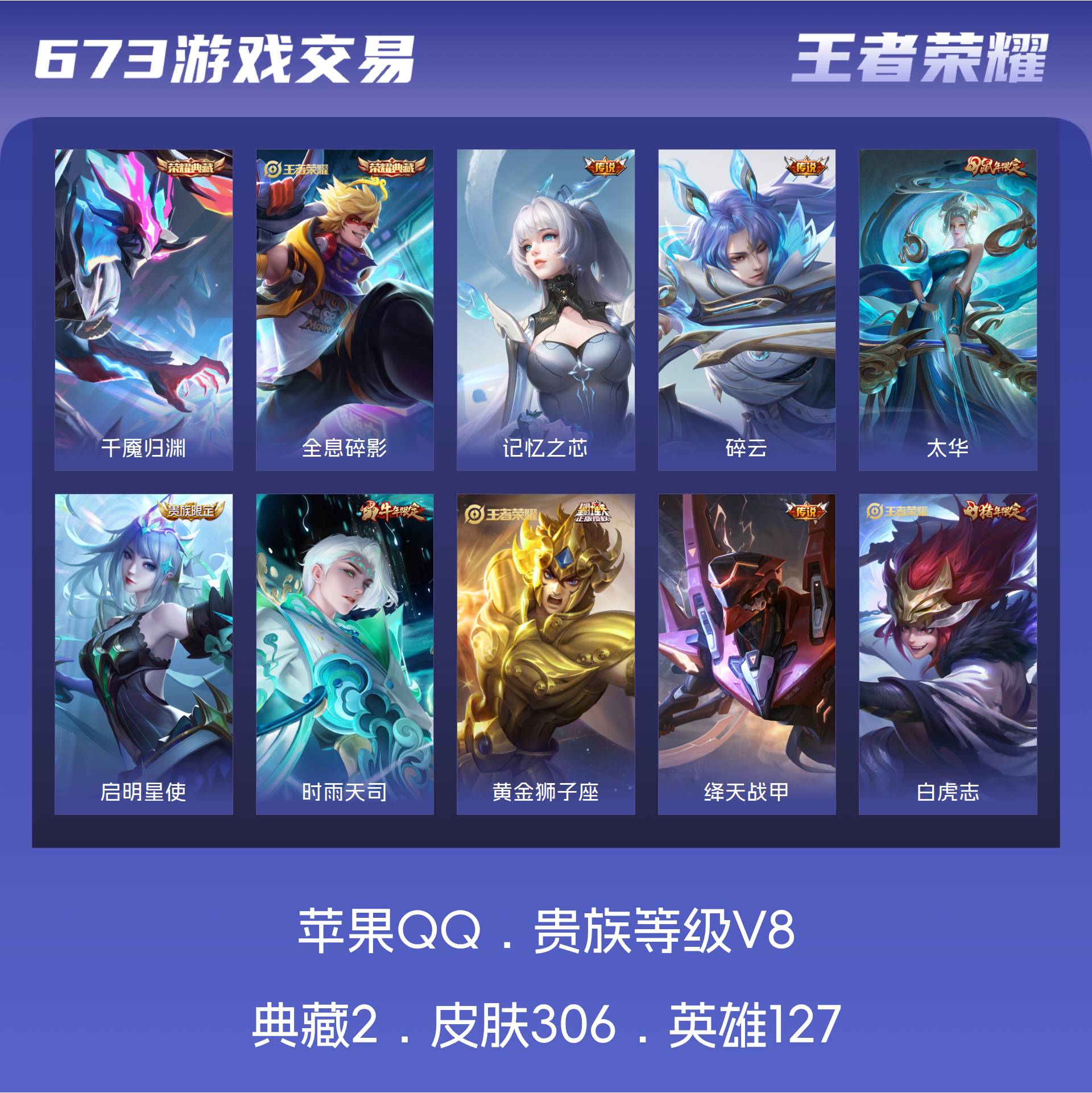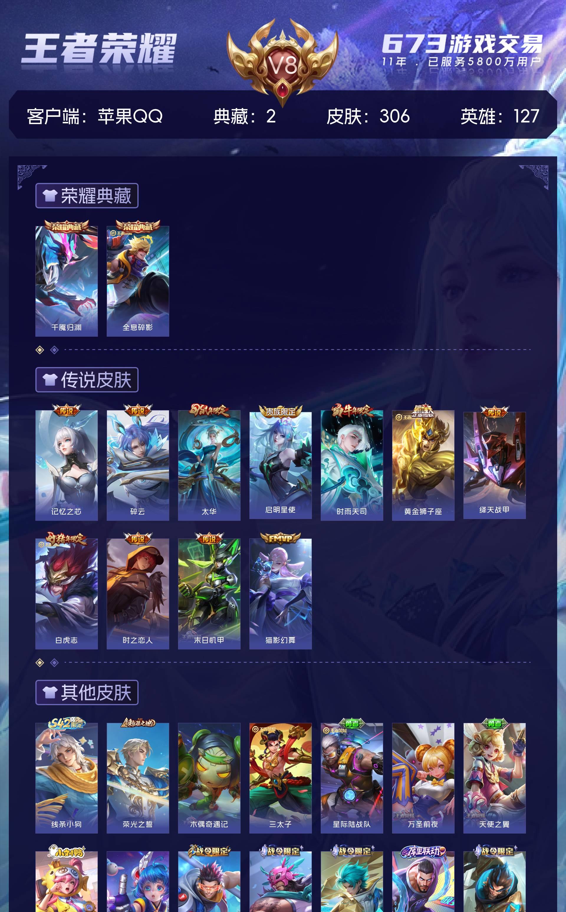 V8 皮肤306 英雄127 非凡王者 荣耀典藏2 传说11