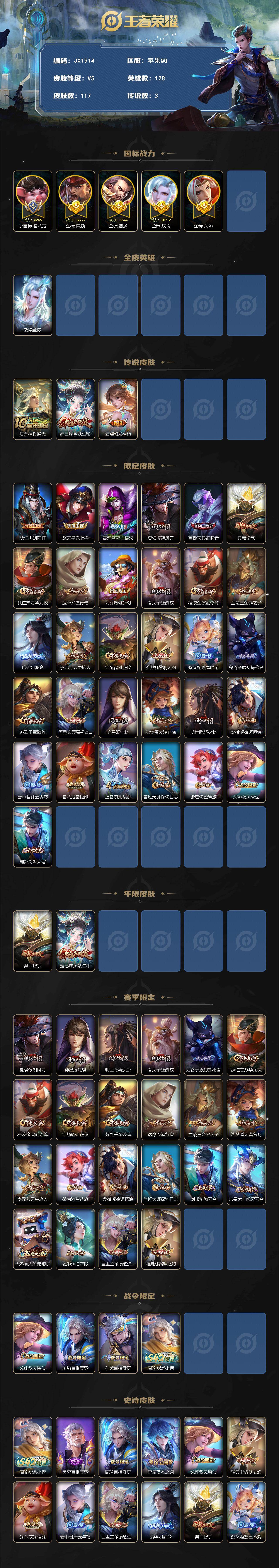 【JX1914】贵族5/皮肤117/传说3/史诗25/英雄128/小国标猪八戒