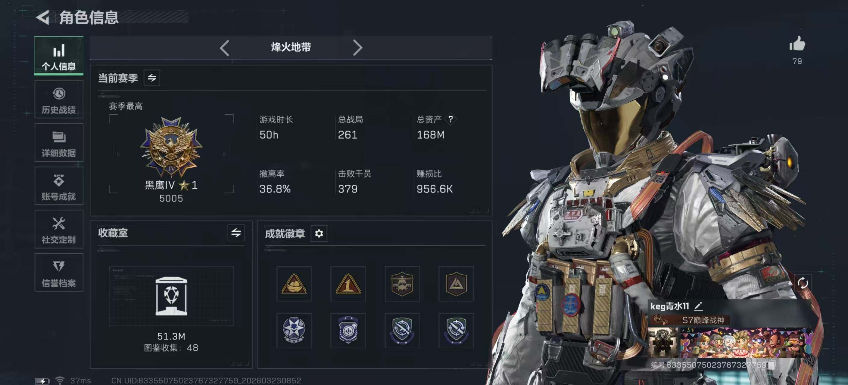 167m总资产-2091k哈夫币-60烽火等级-黑鹰-45战场等级-军士长