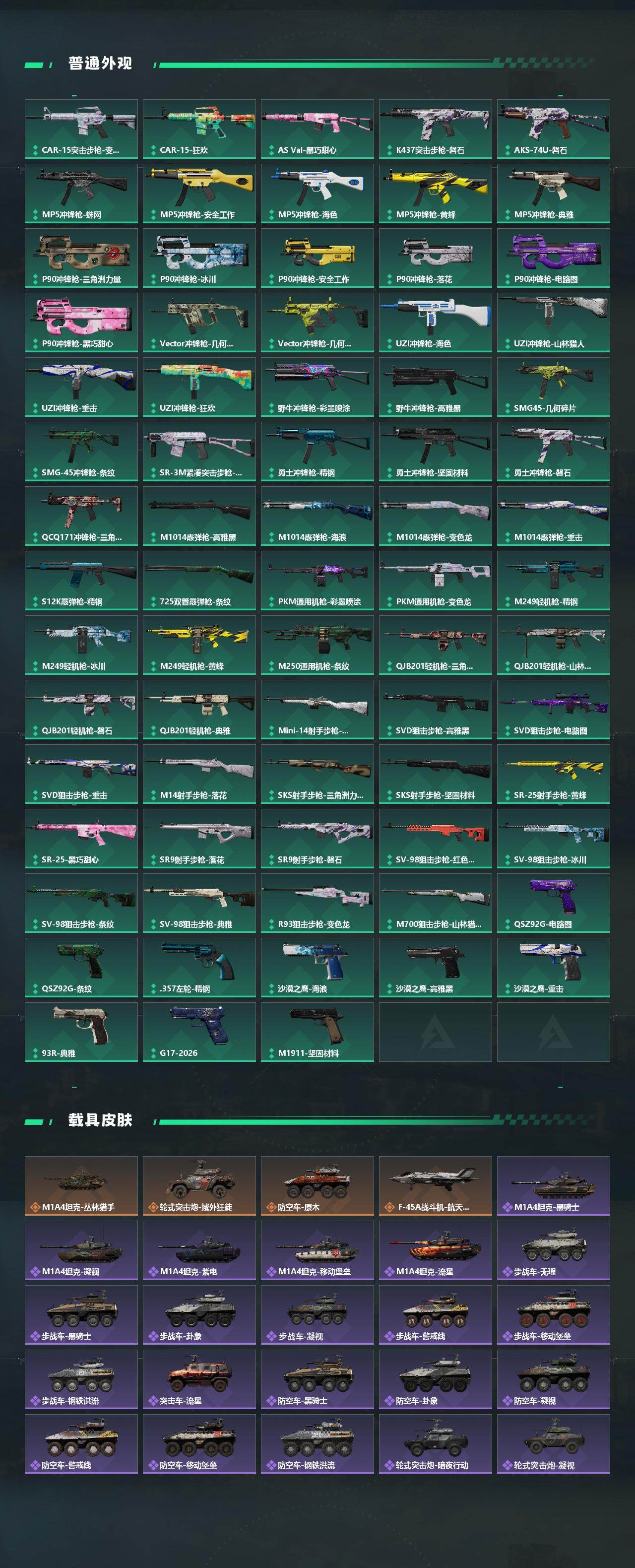 【近战皮肤】:近战-北极星,近战-影锋,近战-处刑者1级,近战-黑鹰