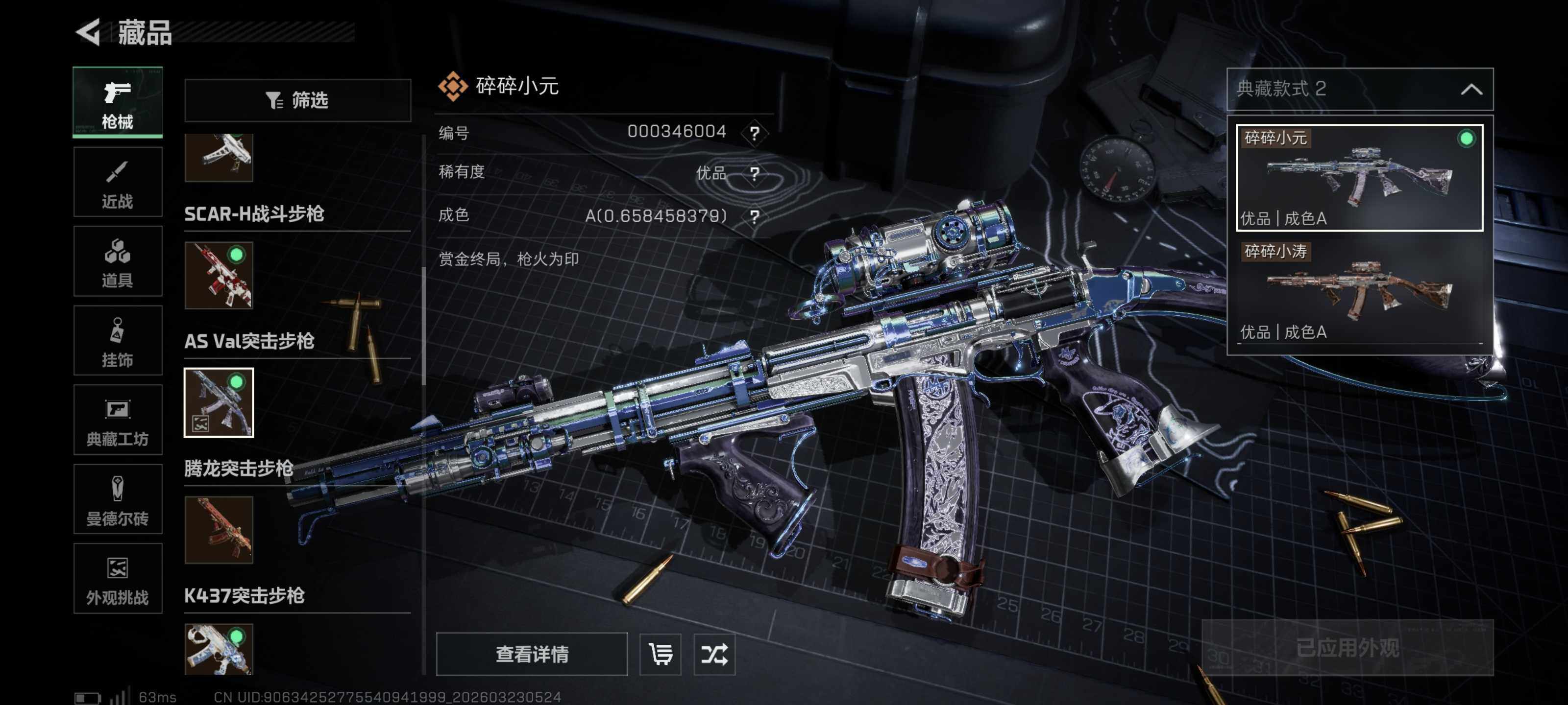 【典藏外观】:K416突击步枪-命运,M7战斗步枪-棱镜攻势S2,AS Val突击步枪-悬赏令*2