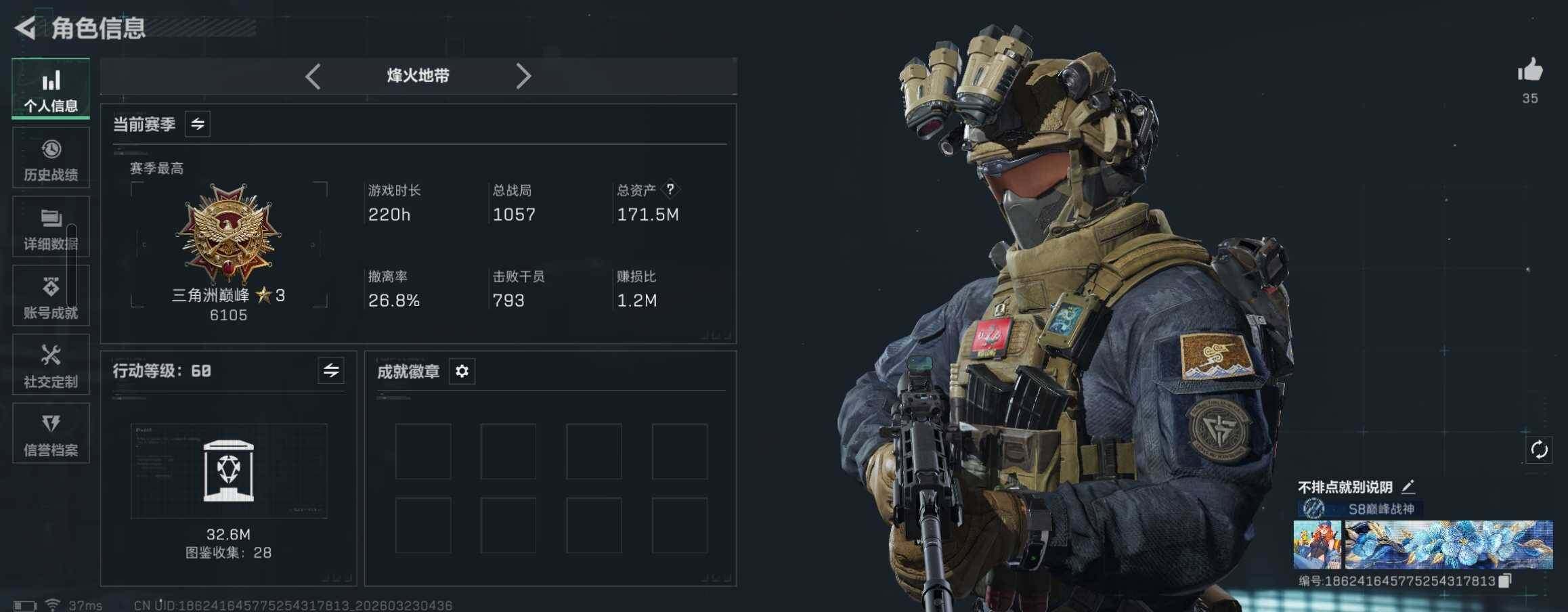 172m总资产-11913k哈夫币-60烽火等级-黑鹰-27战场等级-军士长