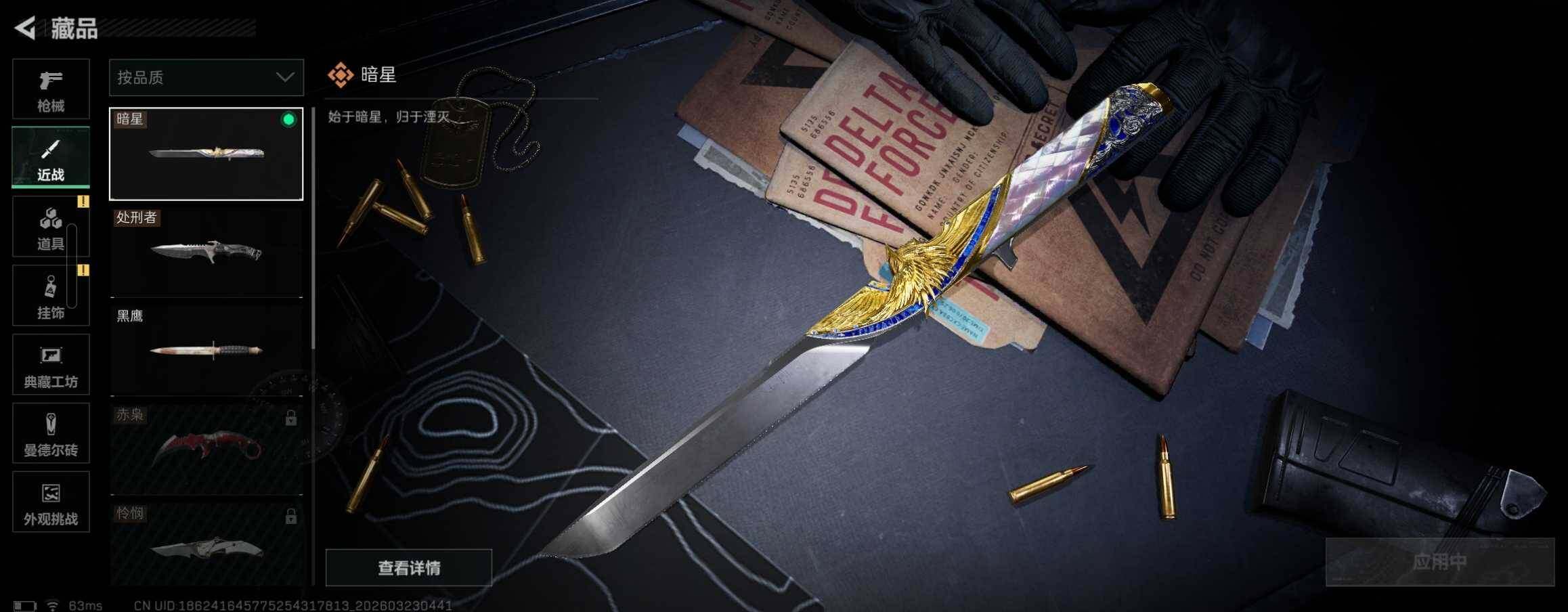 【近战皮肤】:近战-暗星,近战-处刑者1级,近战-黑鹰