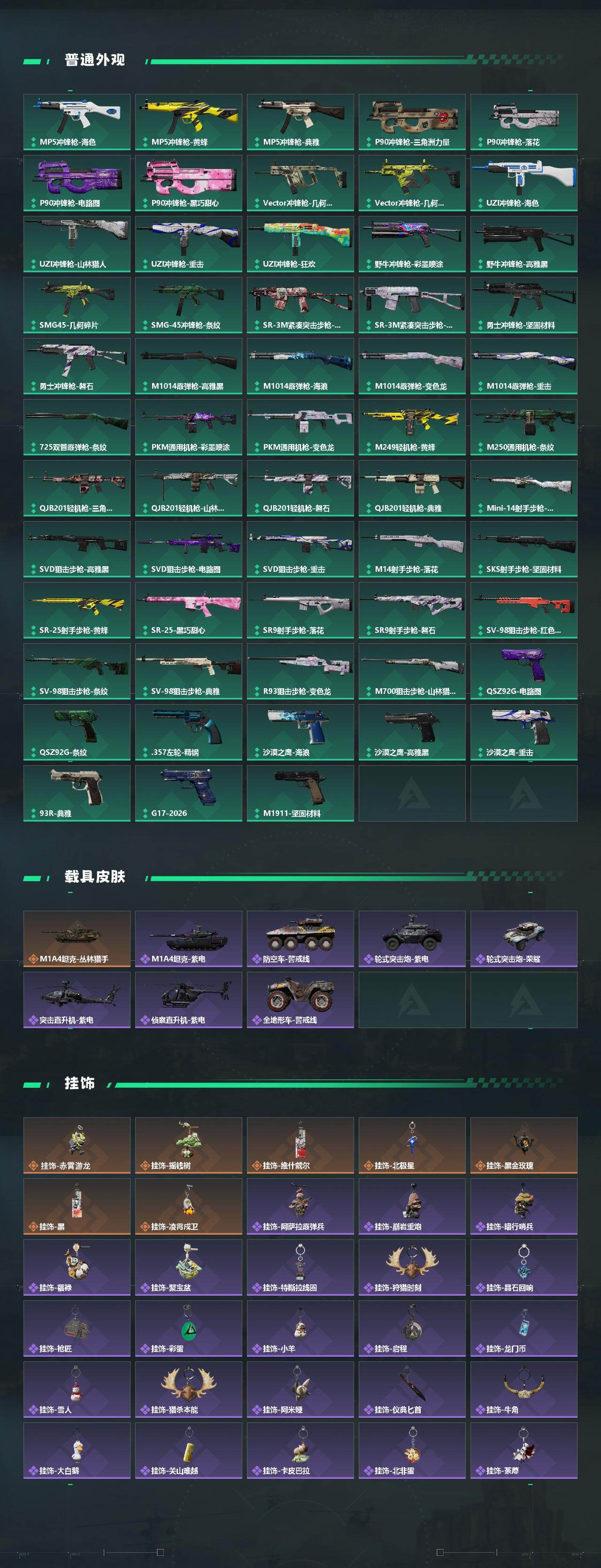 【近战皮肤】:近战-北极星,近战-处刑者2级,近战-黑鹰