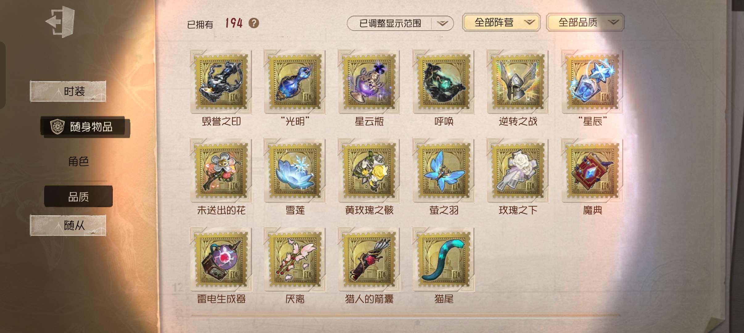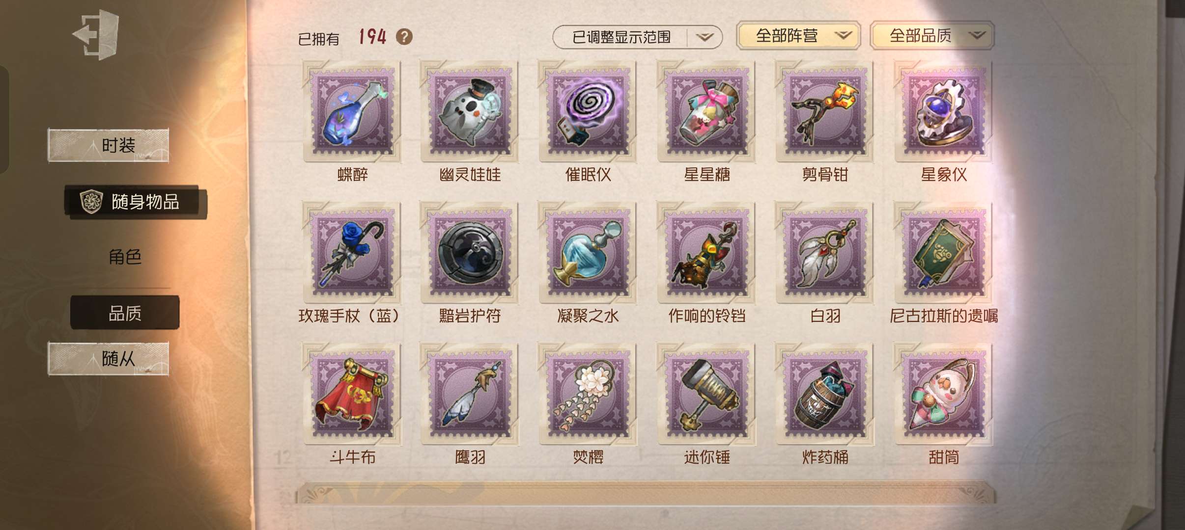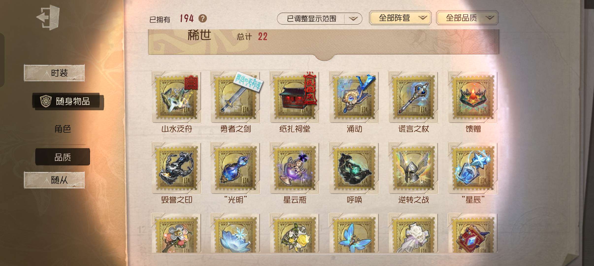 随身物品数量: