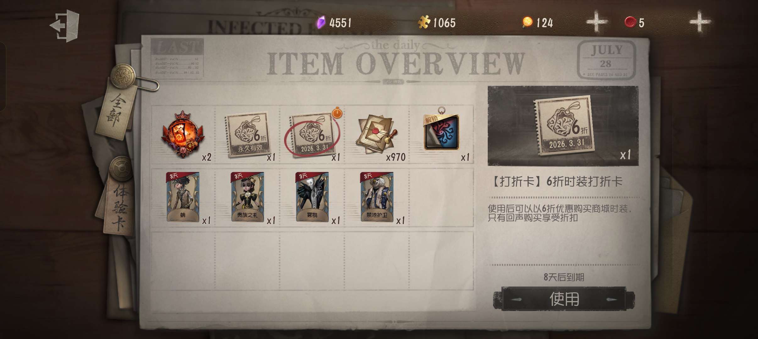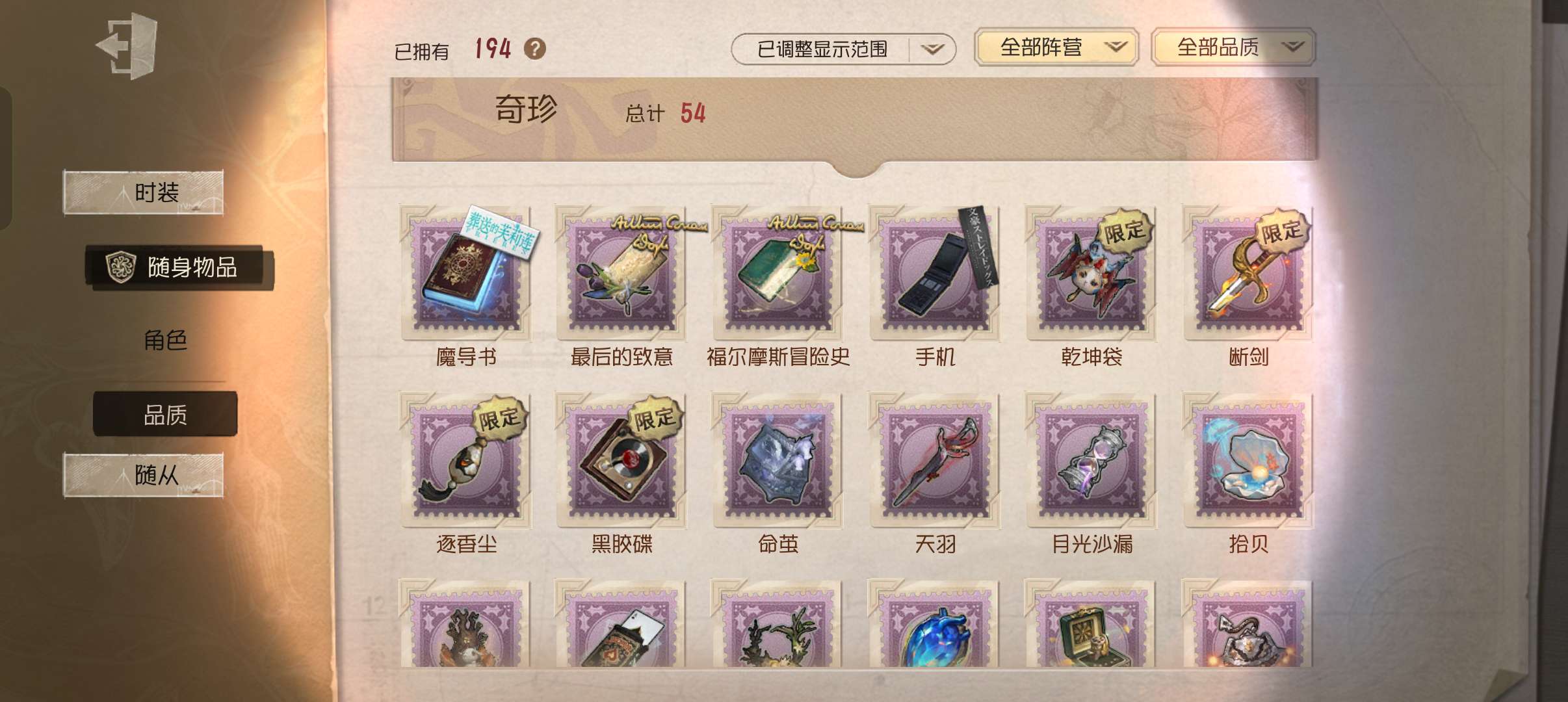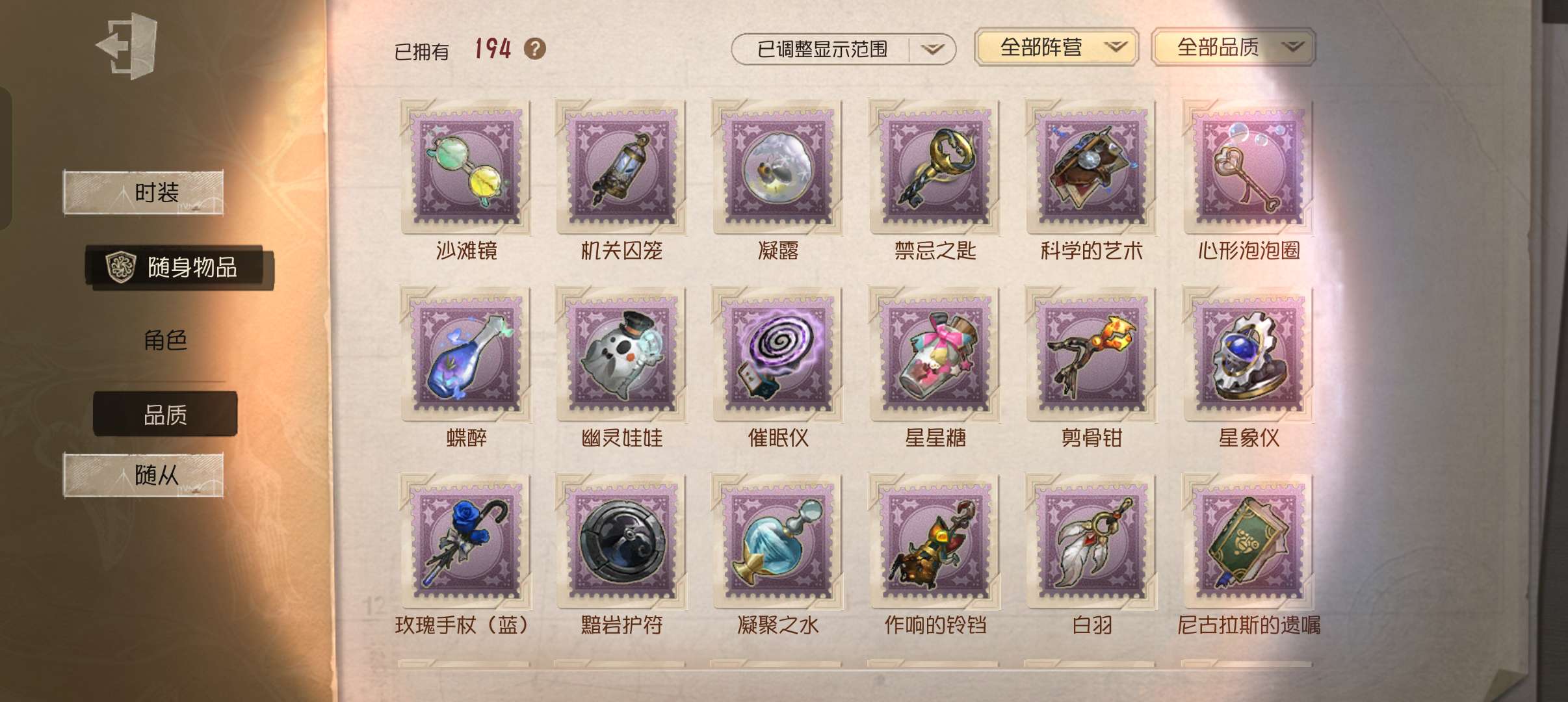 随身物品数量: