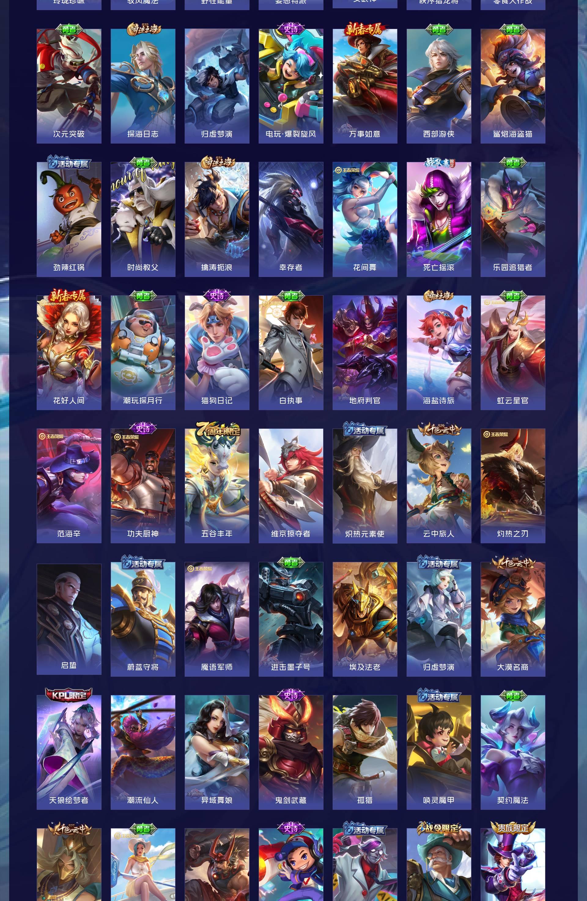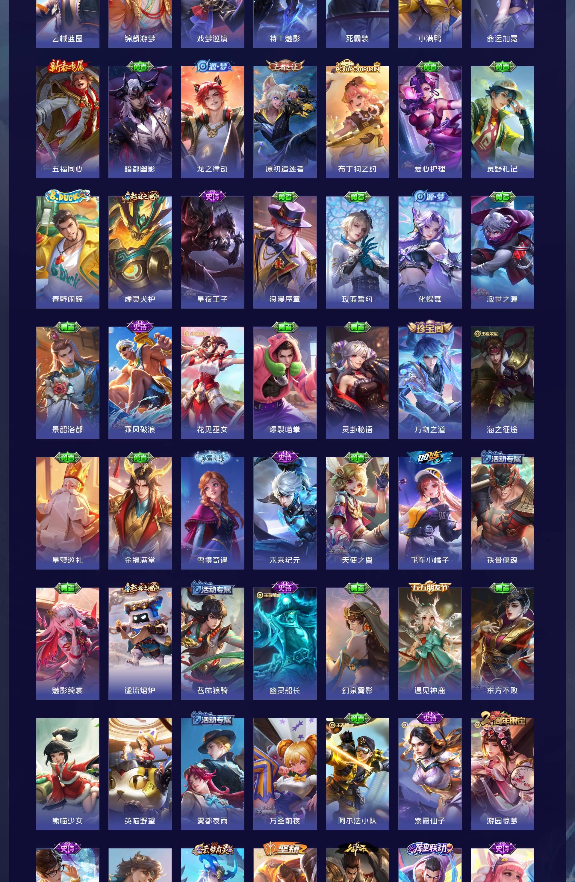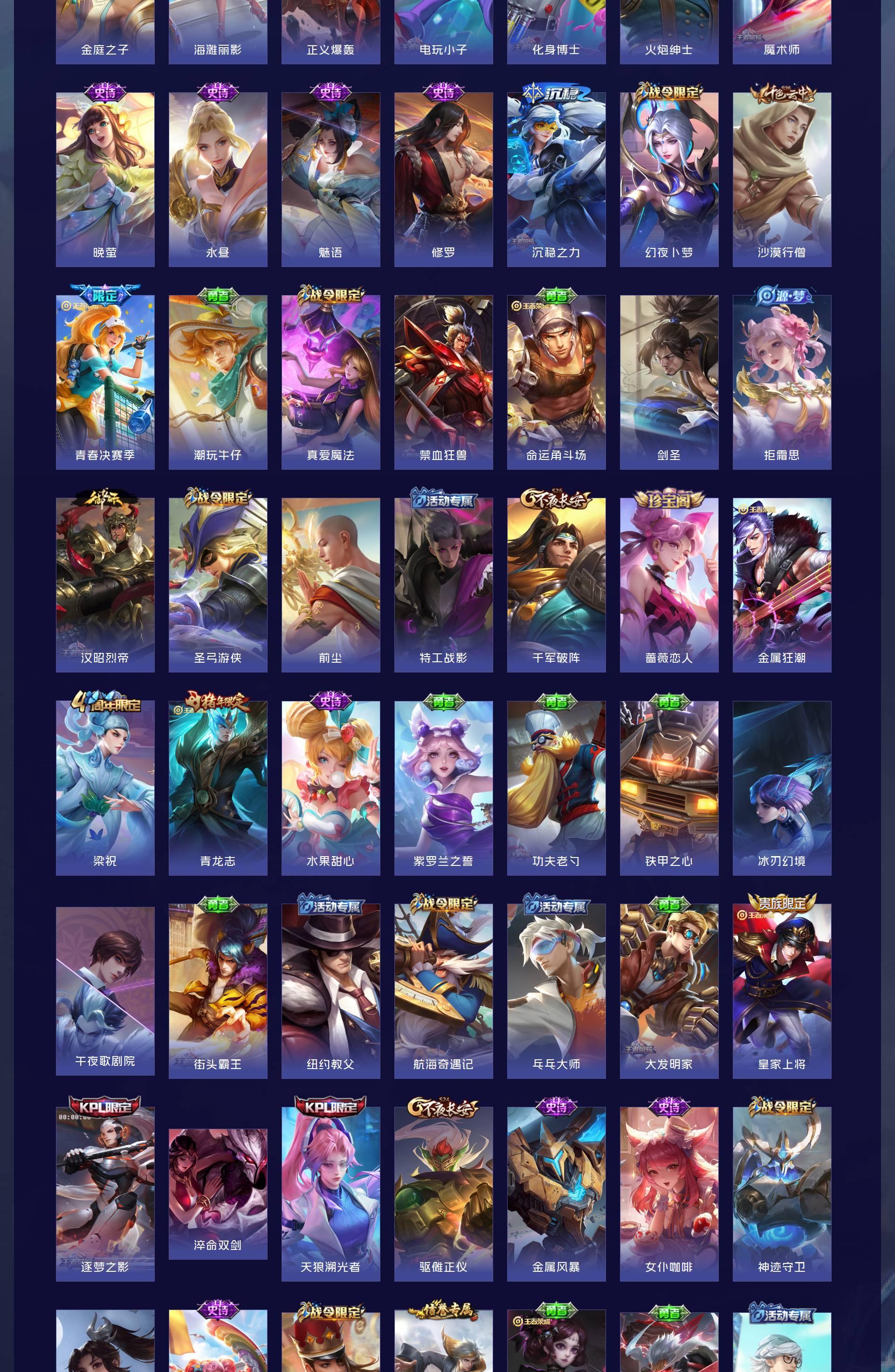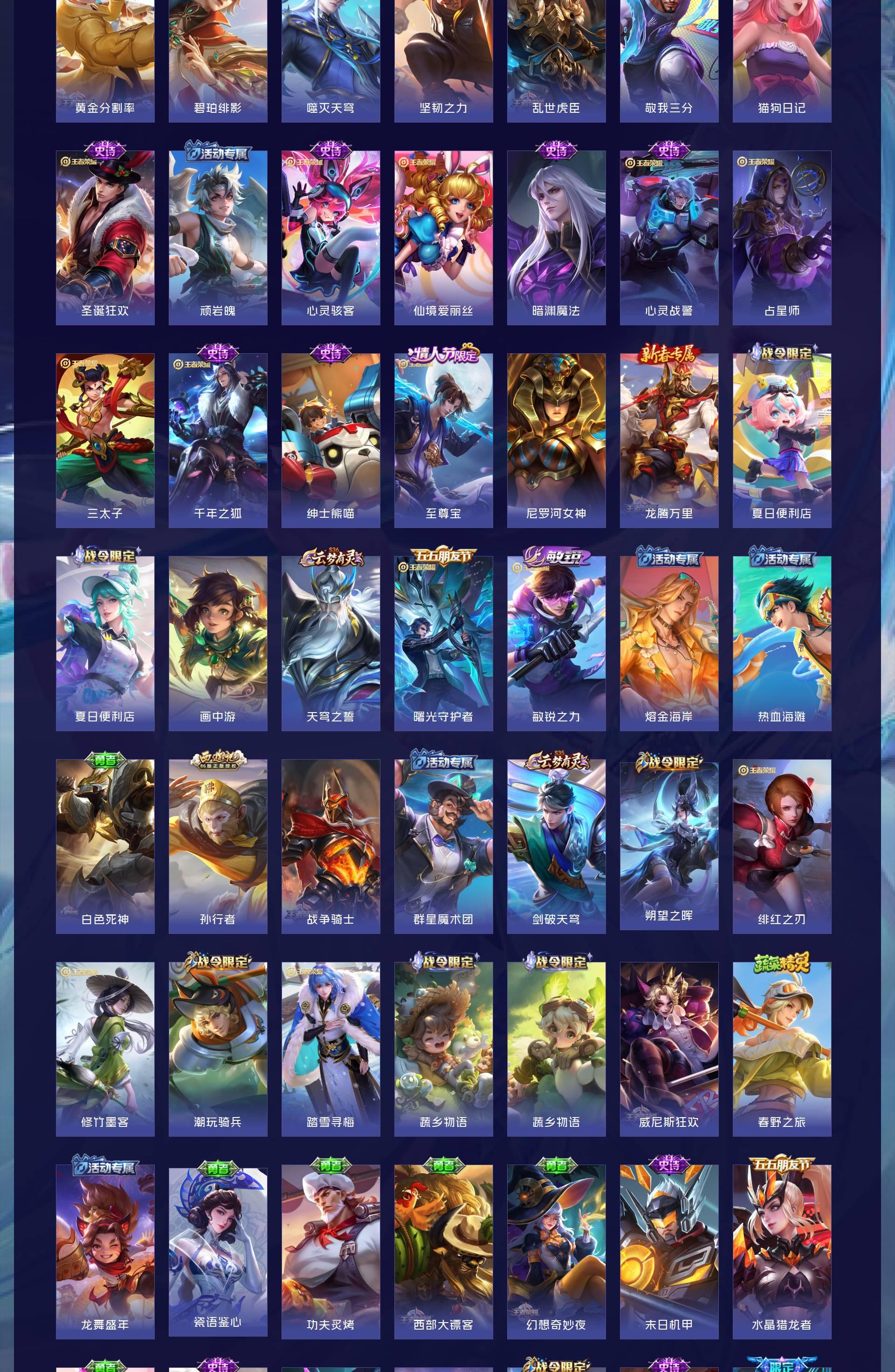 荣耀典藏1、珍品传说1、传说星元2、传说17、史诗96、限定107、英雄128、皮肤328