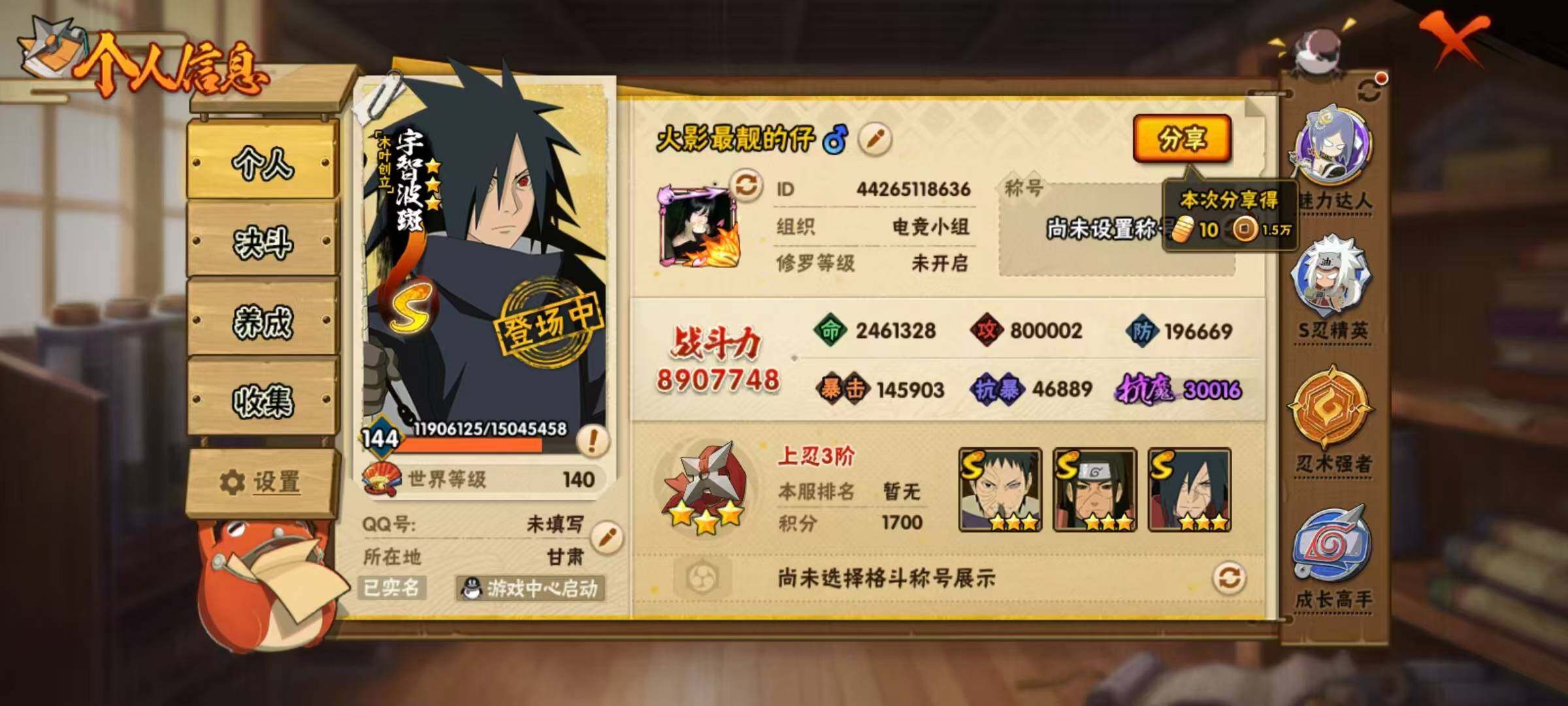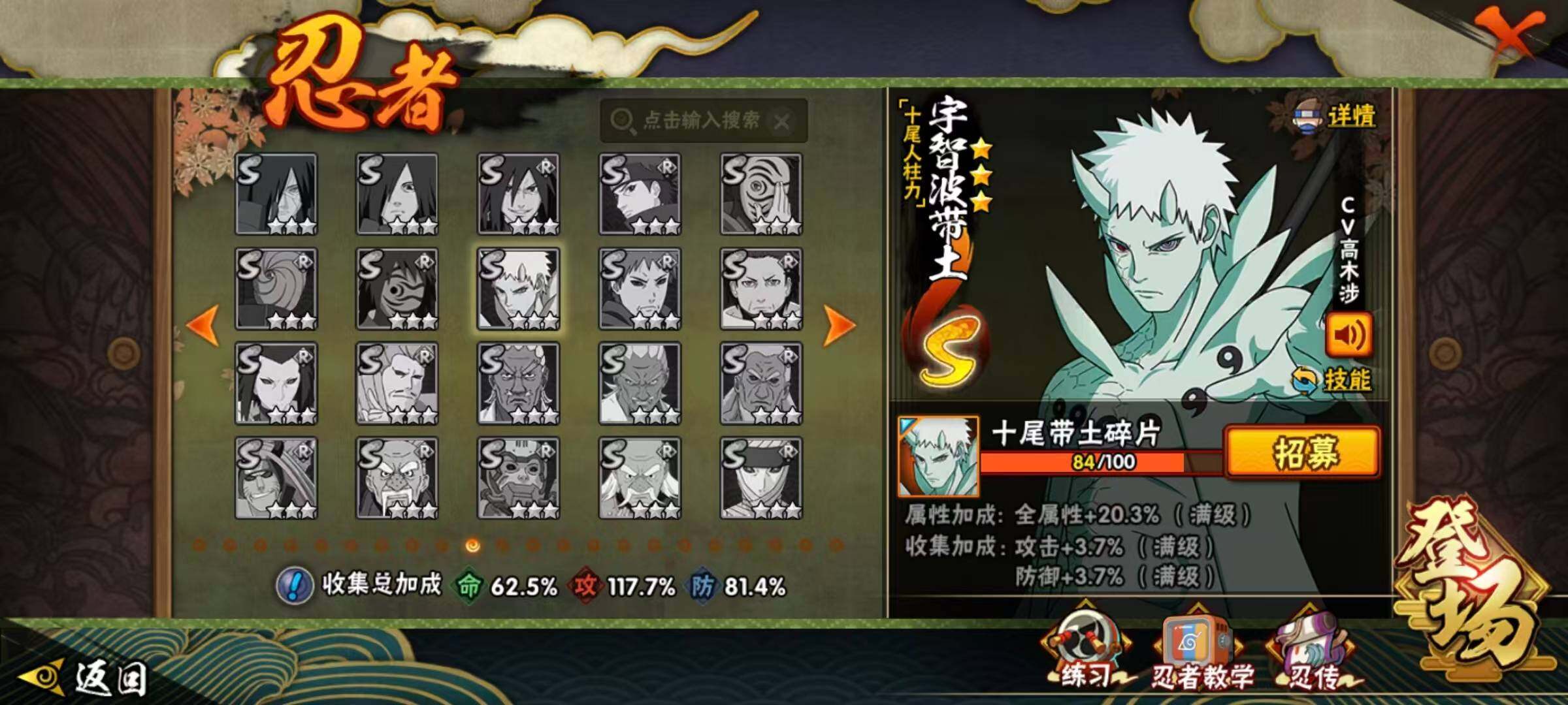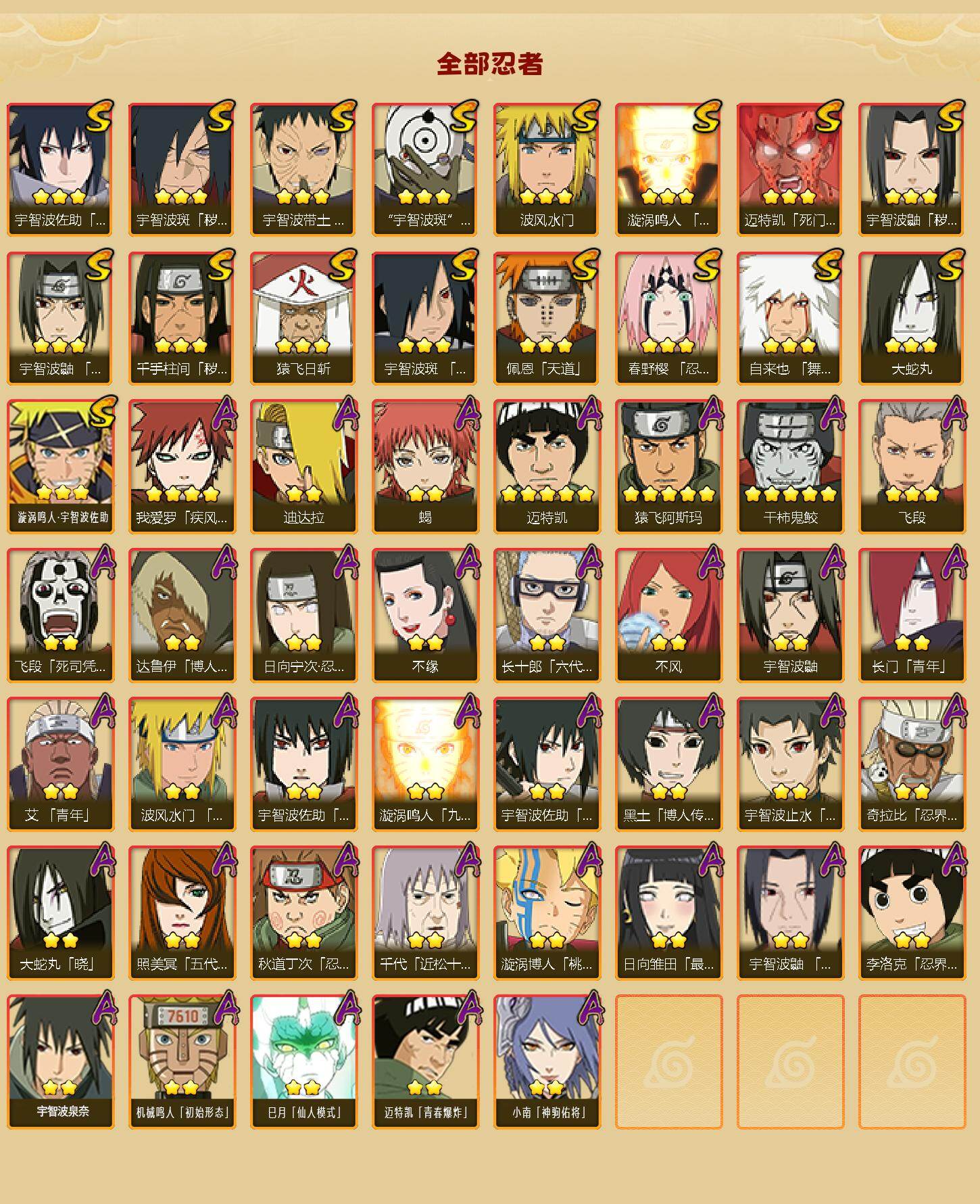 17S级忍者数-36A级忍者数【S级忍者】:千手柱间「秽土转生」(3星),