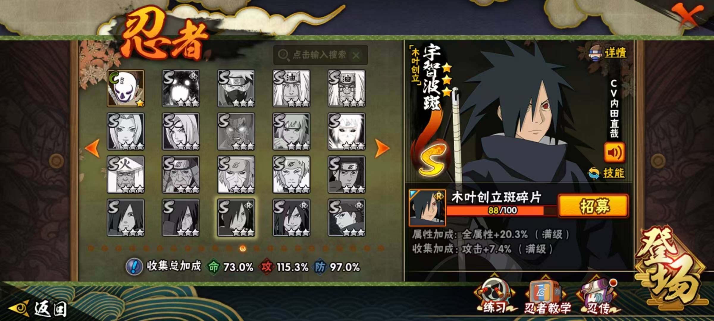 16S级忍者数-48A级忍者数【S级忍者】:千手柱间「秽土转生」(3星),
