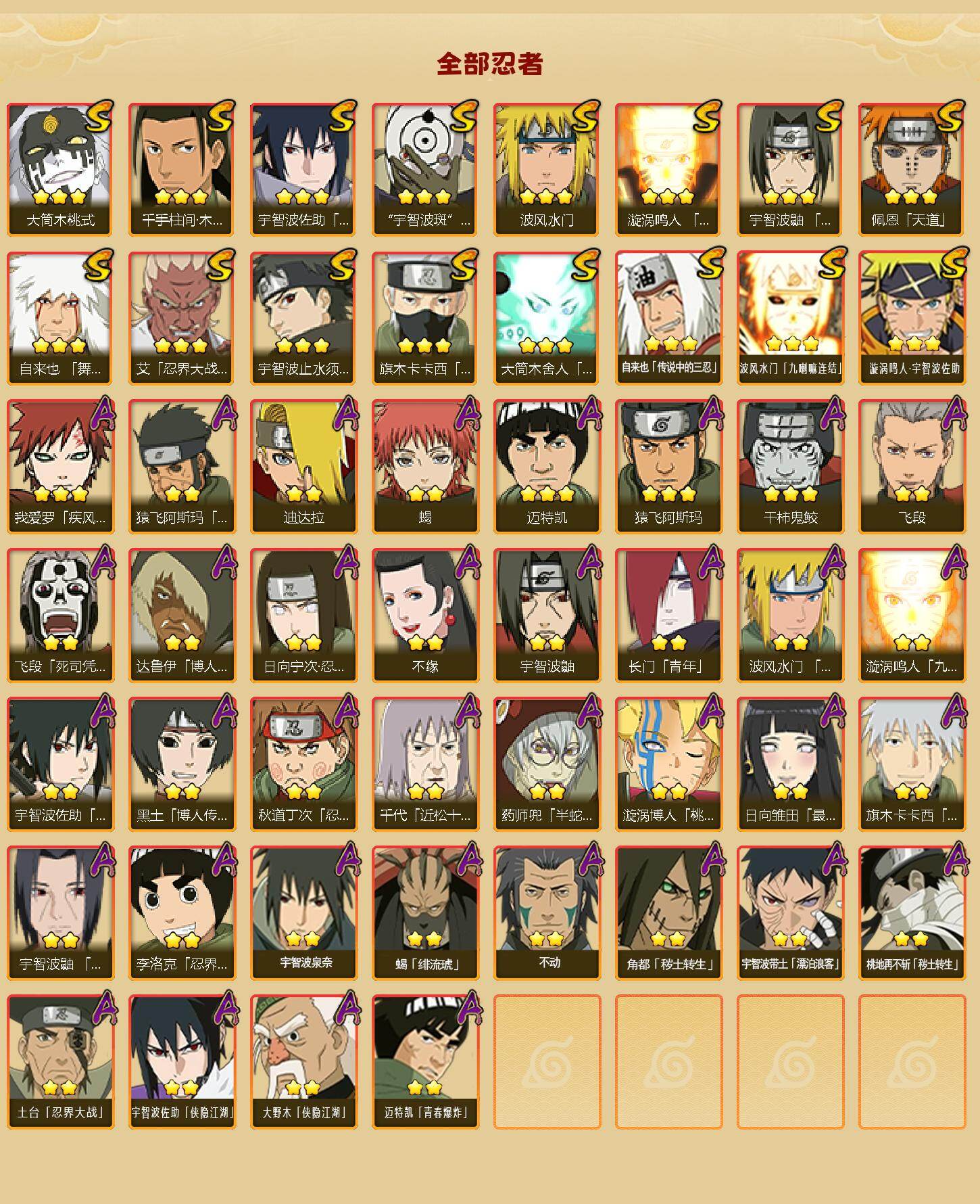 16S级忍者数-36A级忍者数【S级忍者】:艾「忍界大战」(3星)