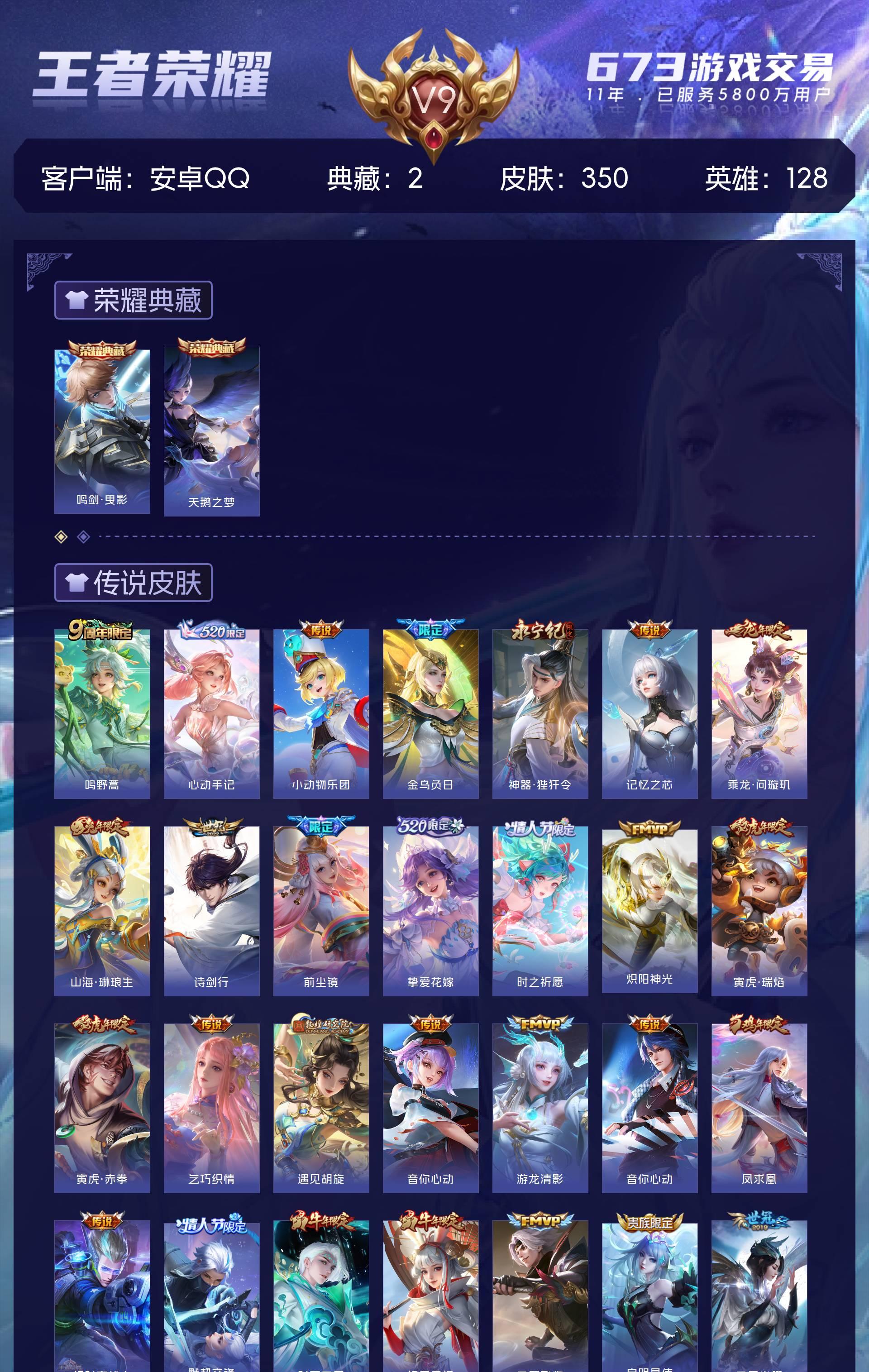 V9 皮肤350 英雄128 至圣王者 荣耀典藏2 传说35