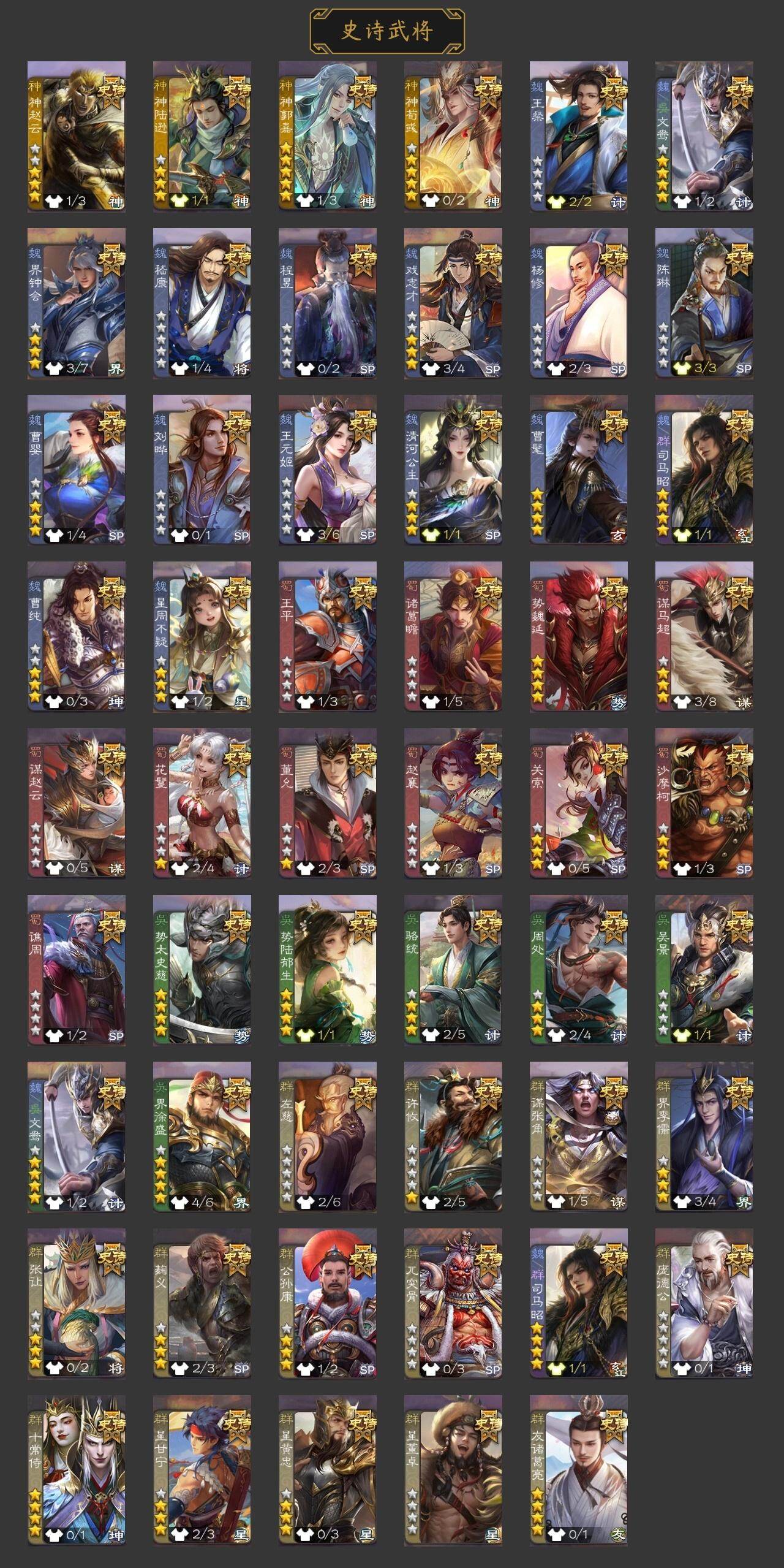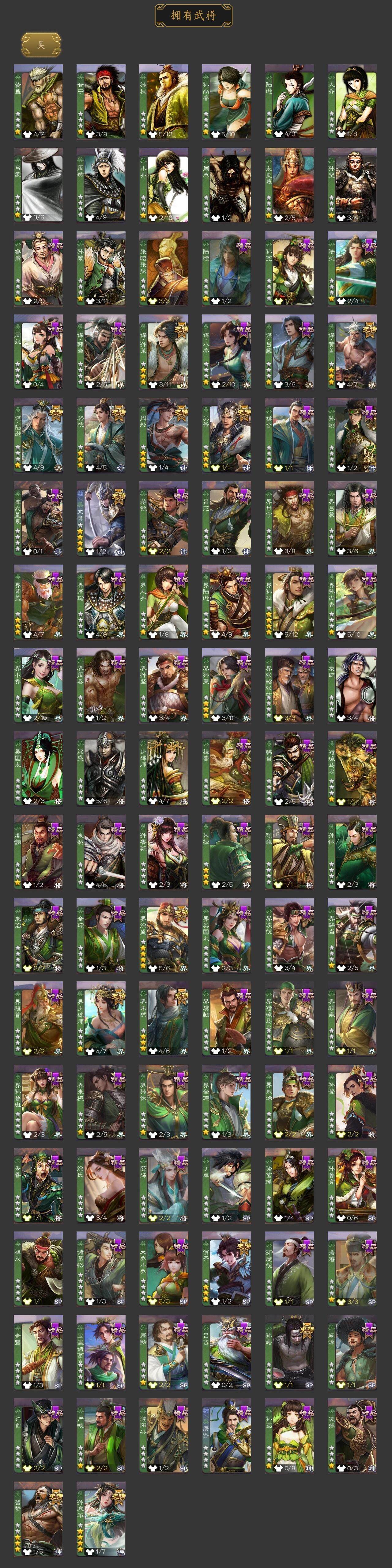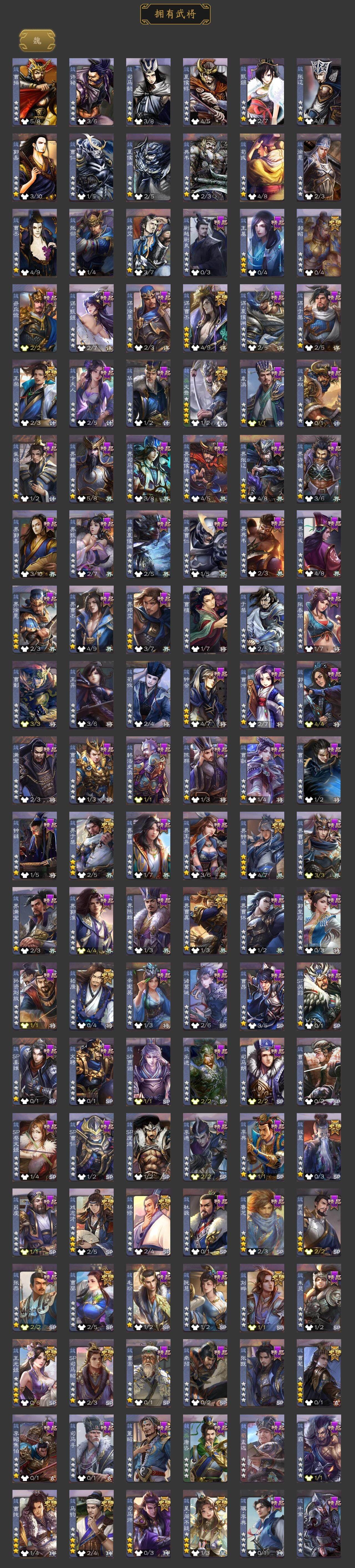 神吕布,神赵云,神司马懿,神陆逊,神刘备,神甘宁,神张辽,神郭嘉,神太史慈,神孙策,神诸葛亮,SP司马昭,曹髦,星周不疑,王粲,杨修,王元姬,司马师,马钧,界钟会,界于禁,