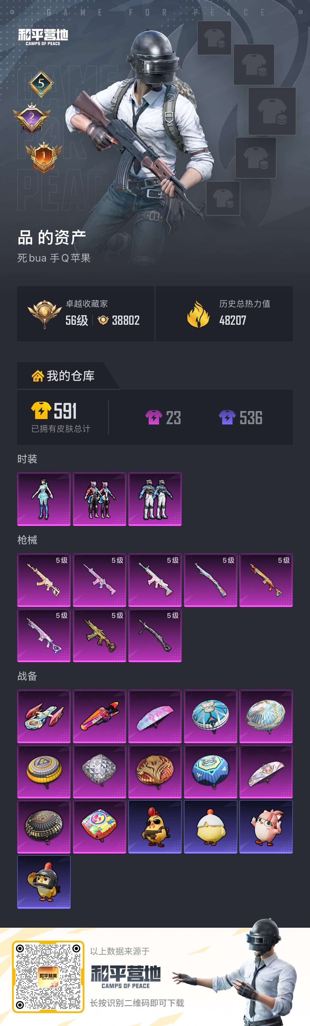 120套装/枪械8/装备191/战备103/王牌印记5/热力值48207/