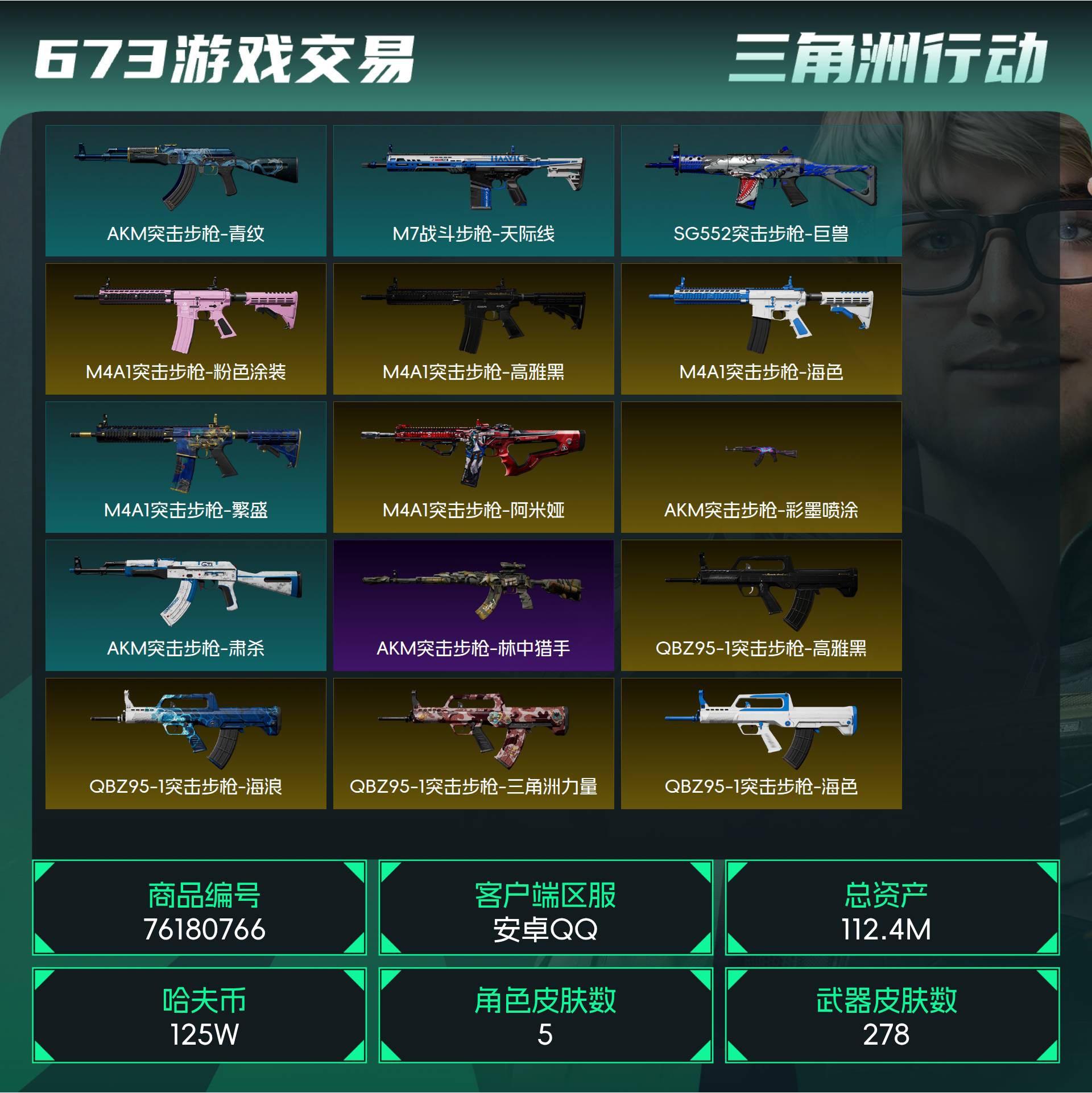 烽火段位铂金4 战场段位暂无段位 总资产112.4M 哈夫币125W 干员5 挂饰39 近战1 枪械278 载具19