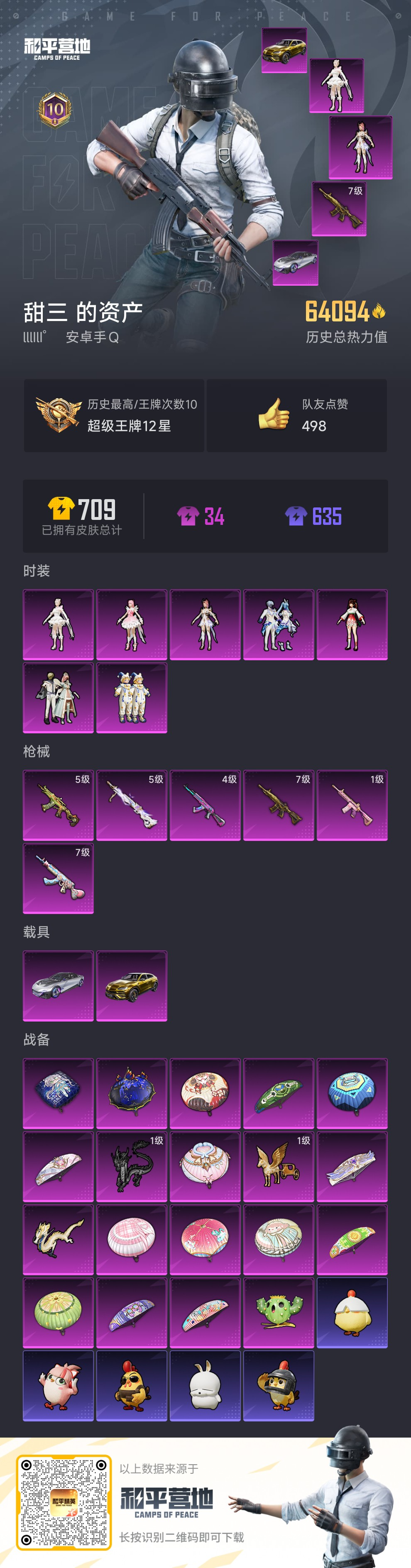 10王牌印记-8粉装-6特效枪-2载具-66157热力值-123套装-200枪皮