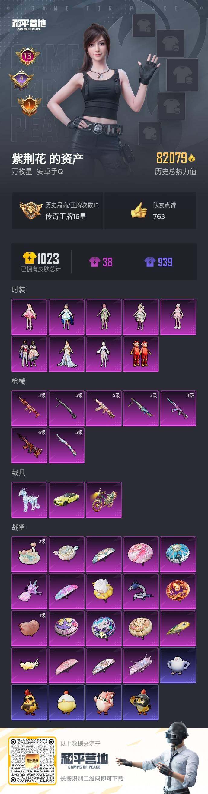 211套装/枪械7/装备340/载具3/战备203/王牌印记13/热力值82079/