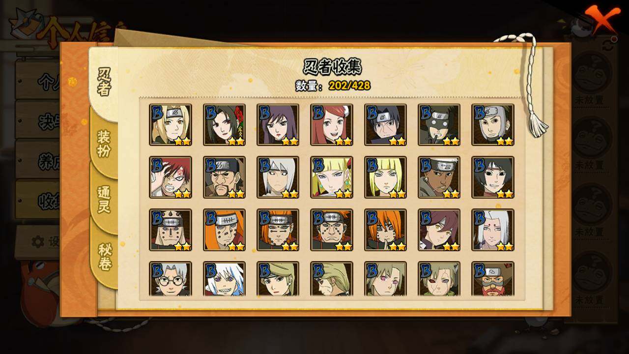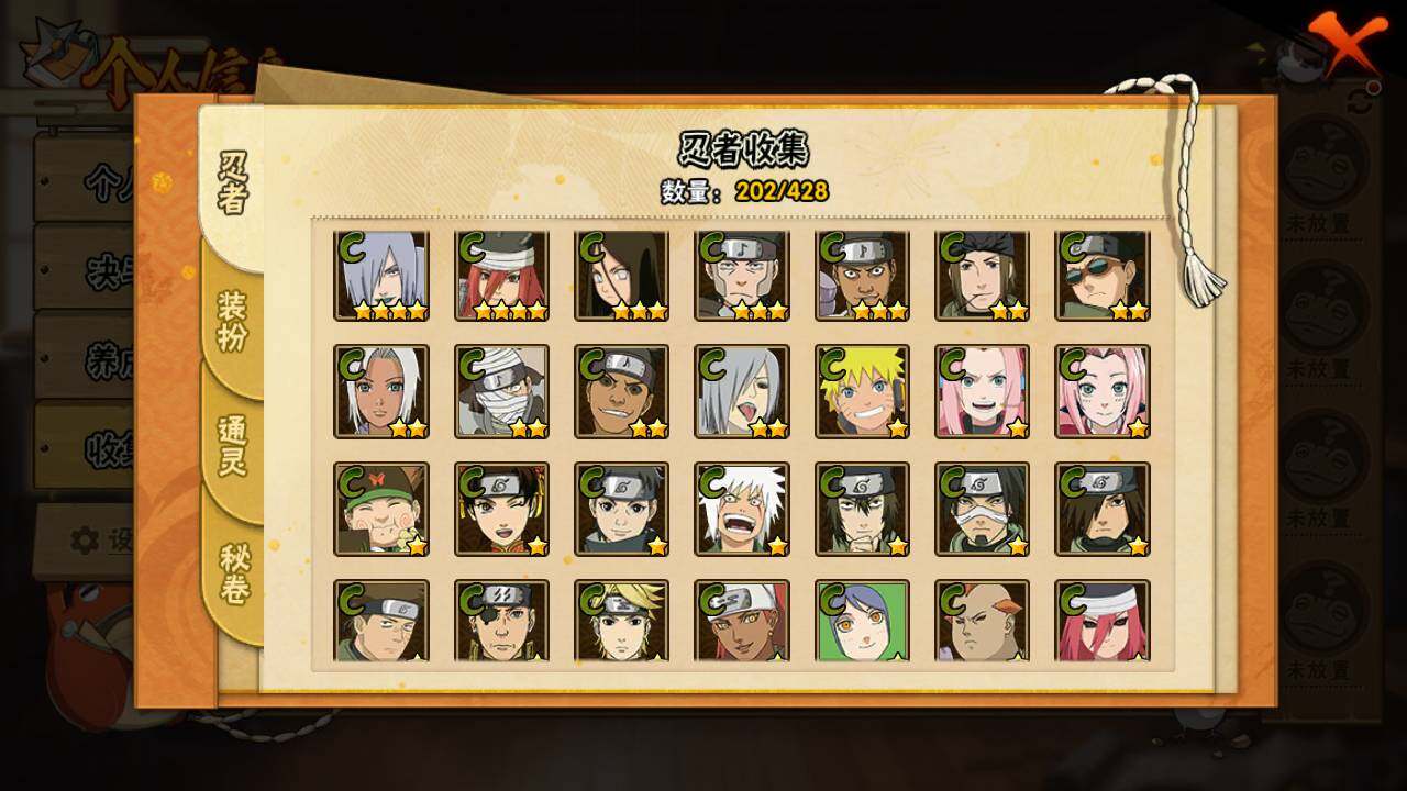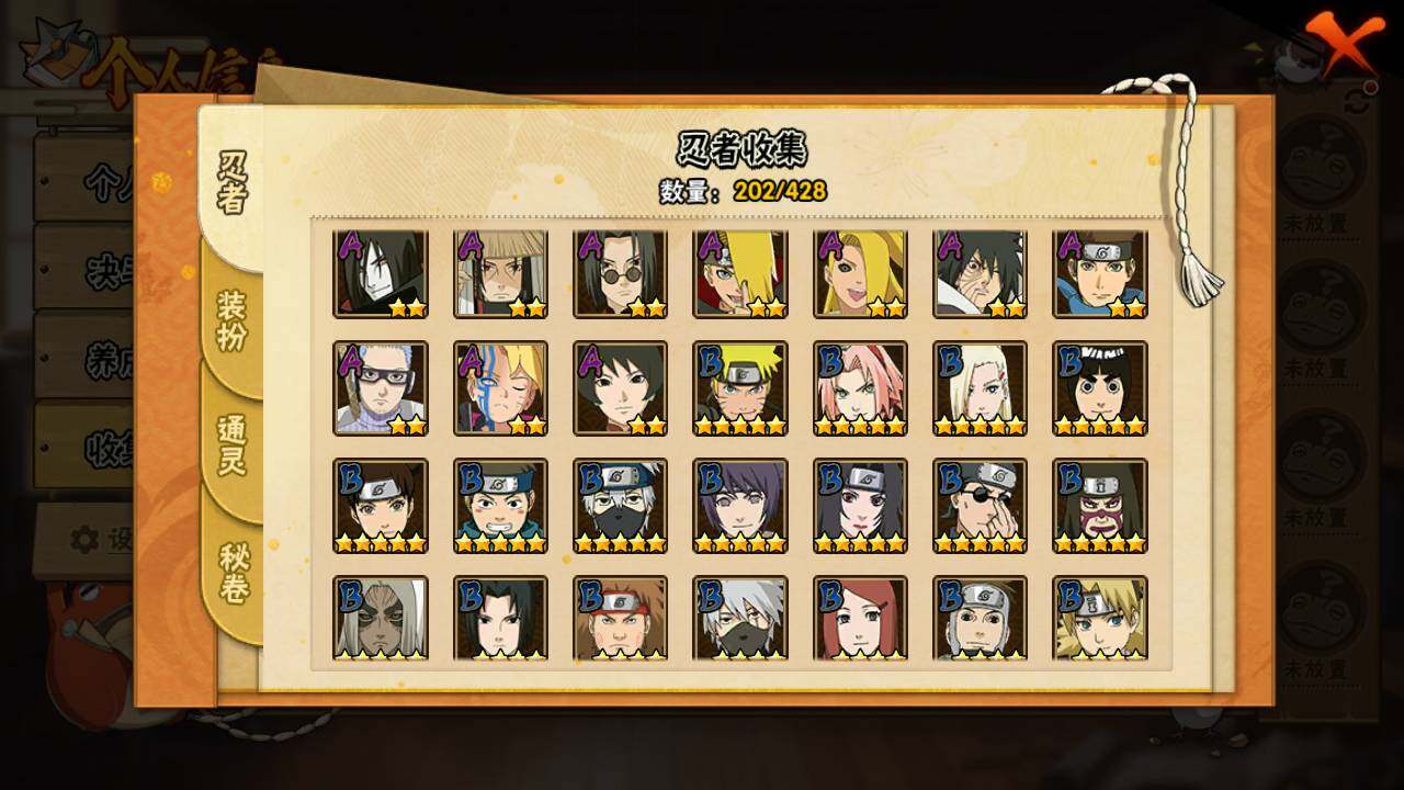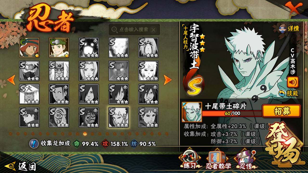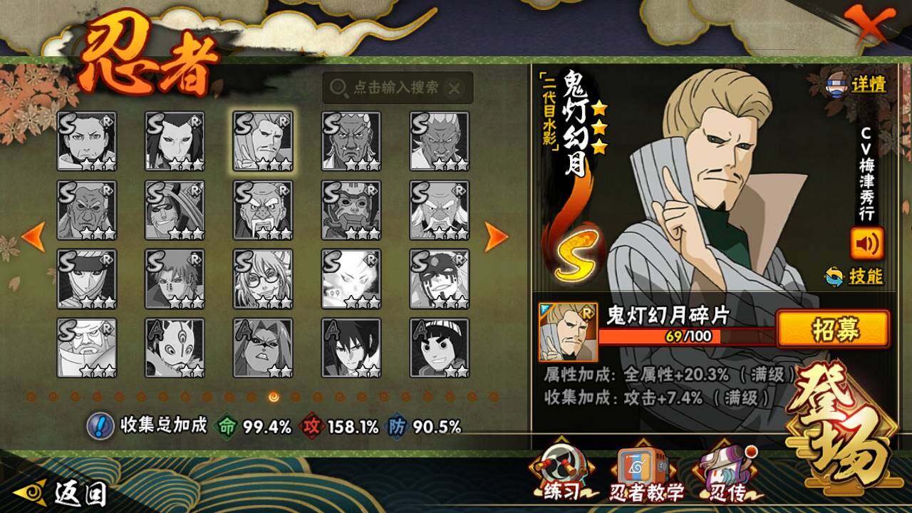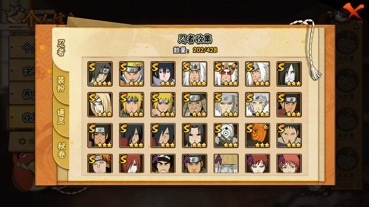 【S级忍者】:长门「秽土转生」(3星),猿飞日斩「秽土转生」(3星),波风水门「秽土转生」(3星),千手扉间「秽土转生」(3星),千手柱间「秽土转生」(3星),宇智波鼬「秽土转生」(3星),宇智波斑「秽土转生」(3星),宇智波斑「秽土转生·解」(3星),宇智波