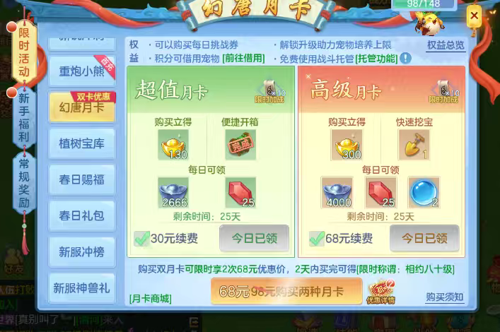 月卡首充