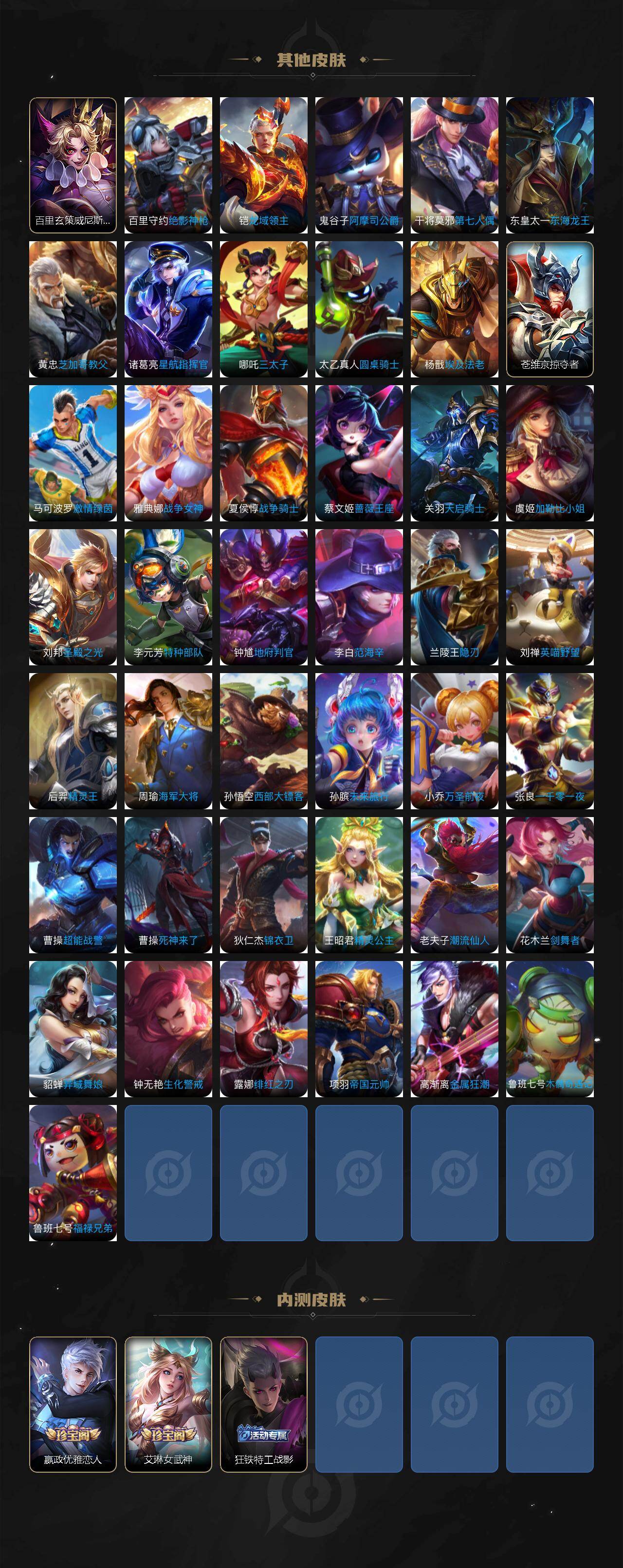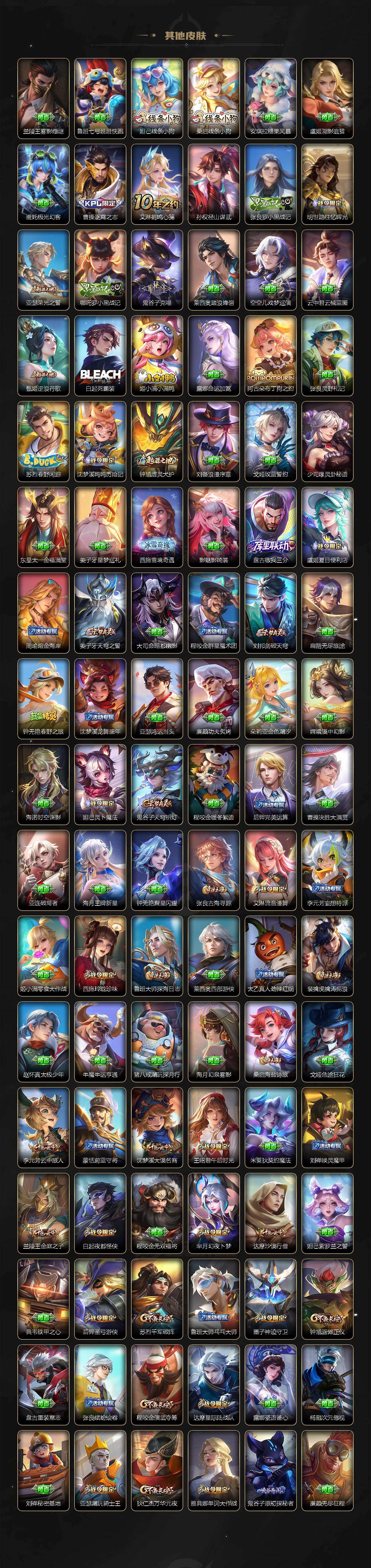 【英雄全皮】:刘禅全皮,孙权全皮,狂铁全皮,敖隐全皮,阿古朵全皮,司空震全皮,金蝉全皮,莱西奥全皮,戈娅全皮,空空儿全皮,海诺全皮
