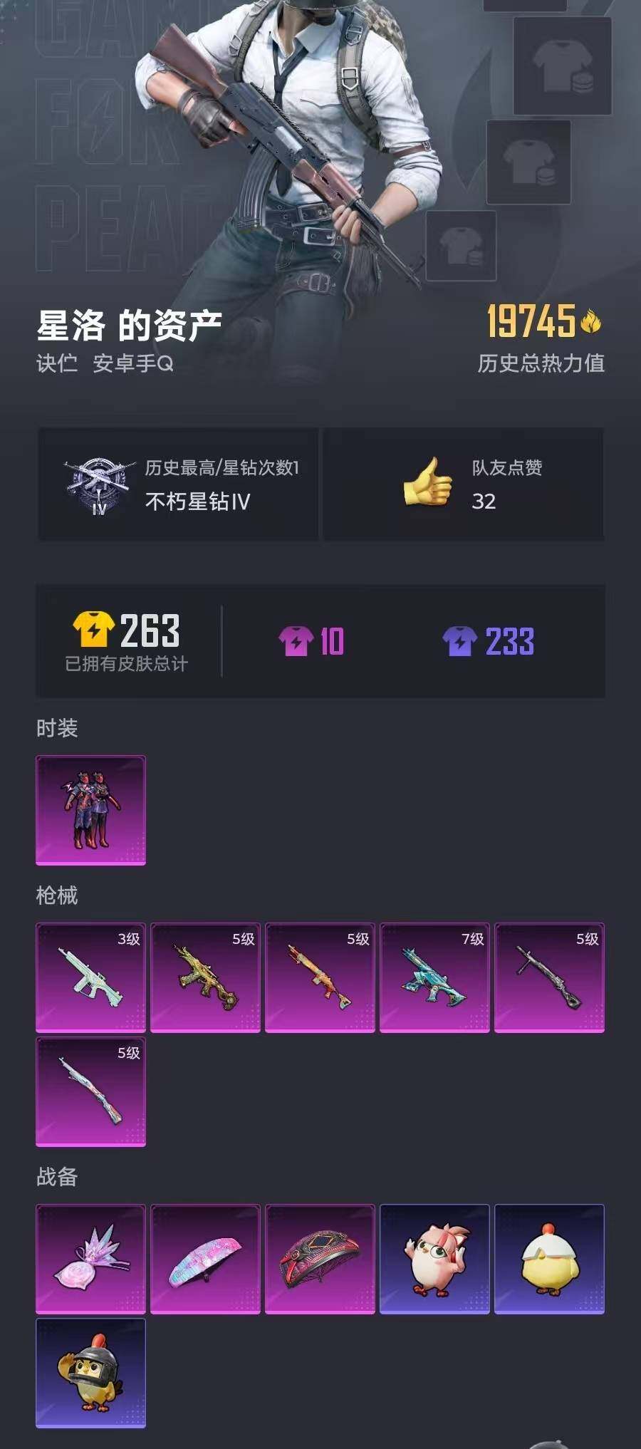 38套装/枪械6/装备97/战备44/热力值19745/七级蜜獾-异瞳寒姬/五级AKS-74U-森灵之息/五级Kar98K-巳巳如意/五级Mk14-福马献瑞/三级AA12-G-萌骑幻想/五级DP-28-豹影疾电/星之彼岸/蜜獾-异瞳寒姬/AKS-74U-森灵之息/Kar98K-巳巳如意/Mk14-福马献瑞/AA12-G-萌骑幻想/DP-28-豹影疾电/炫彩糖果飞行器/星之彼岸降落伞/炫彩糖果降落