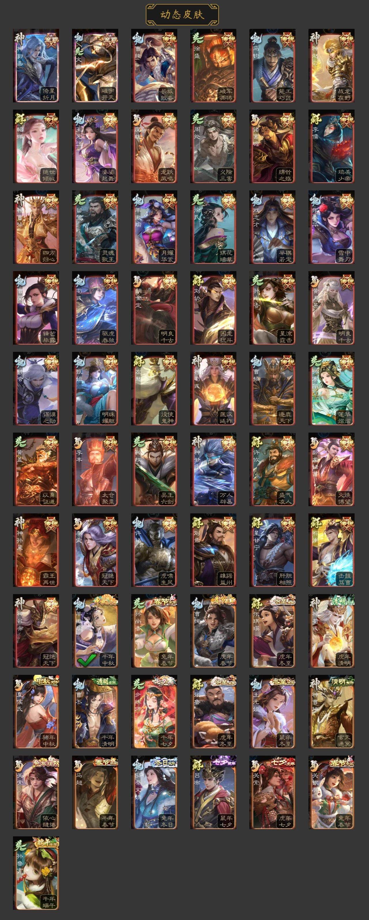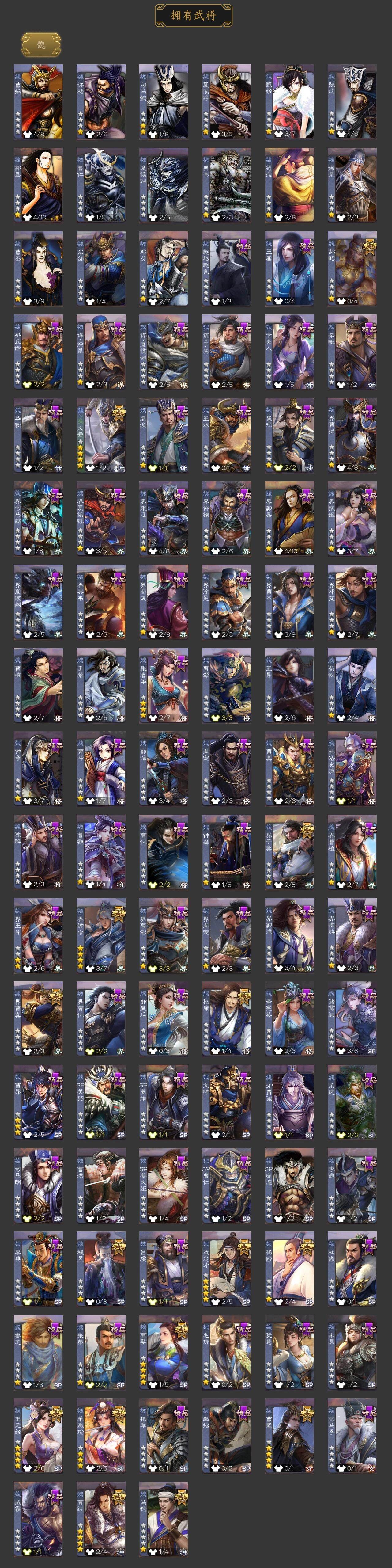 神曹操,神吕布,神赵云,神陆逊,神刘备,神甘宁,神张辽,神郭嘉,神太史慈,神孙策,神荀彧,神诸葛亮,曹髦,杨修,羊徽瑜,王元姬,马钧,界钟会,界于禁,界曹真,嵇康,郝昭,曹