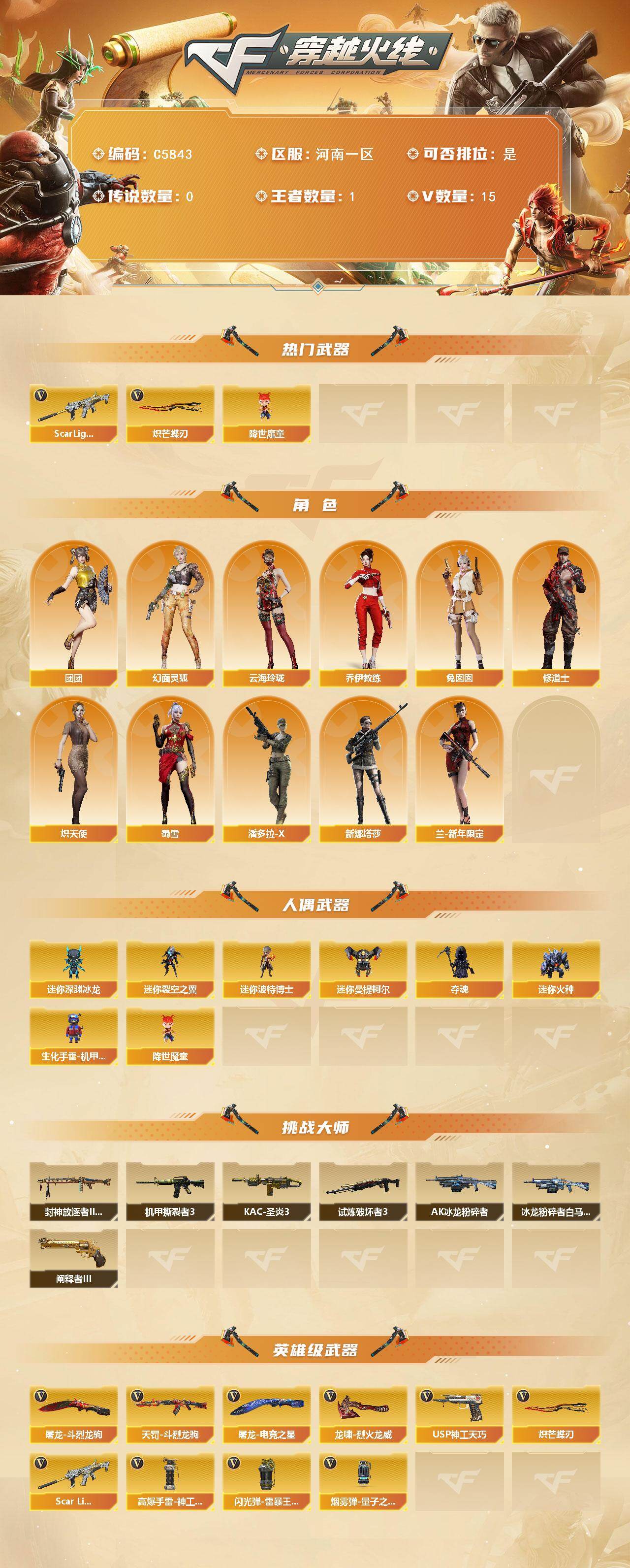 河南一区-16V-1王者武器数-0炫金武器数
