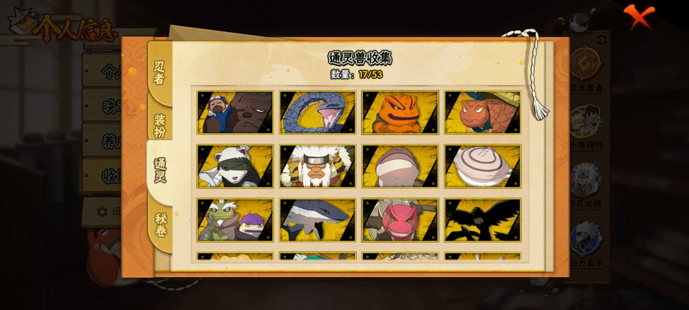 28S/44A/V8,有仙人自来也,四星水门天道大蛇丸,秽土再不斩和巳月差几片就出,其它看详情图