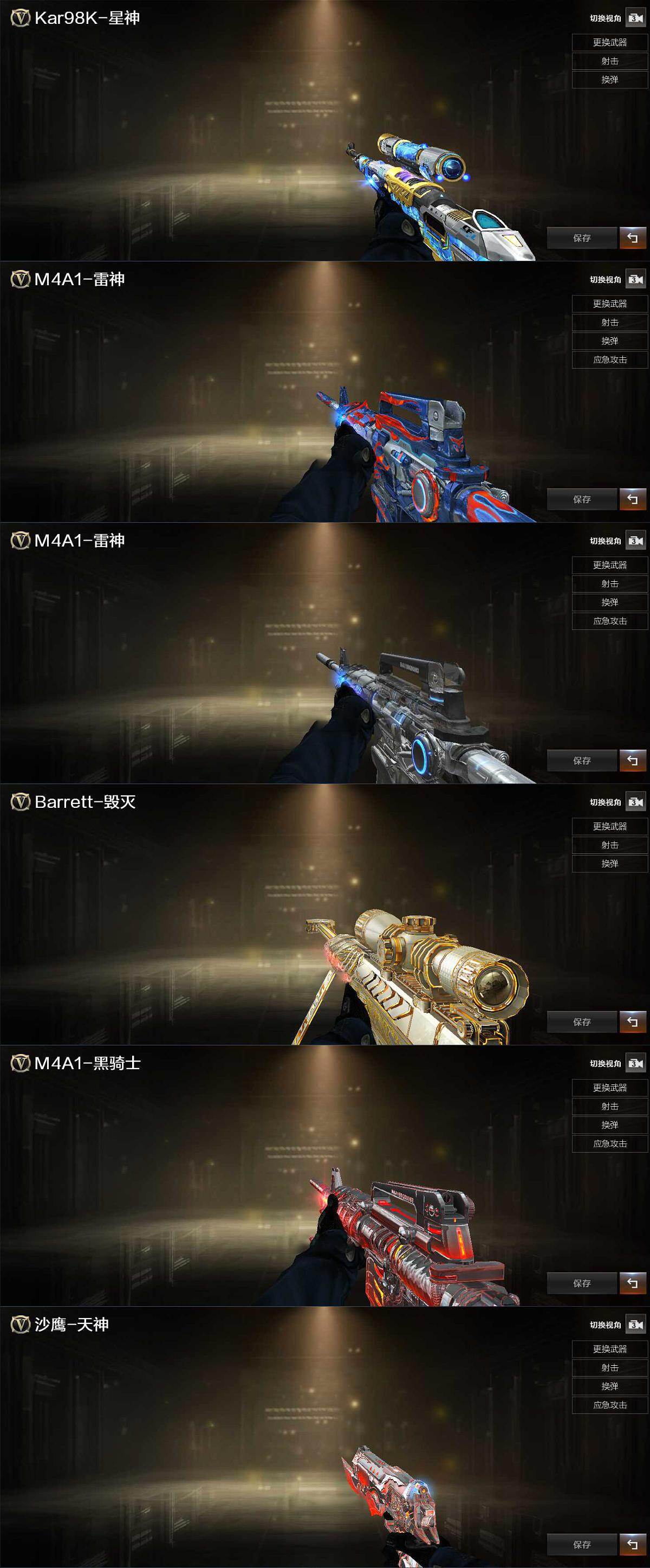 【热门武器】:QBZ03-金色蔷薇,Scar Light-白虎,死亡之眼,M4A1-黑骑士,汤姆逊-烈龙*6,RPK-盘龙*3,沙鹰-修罗*2